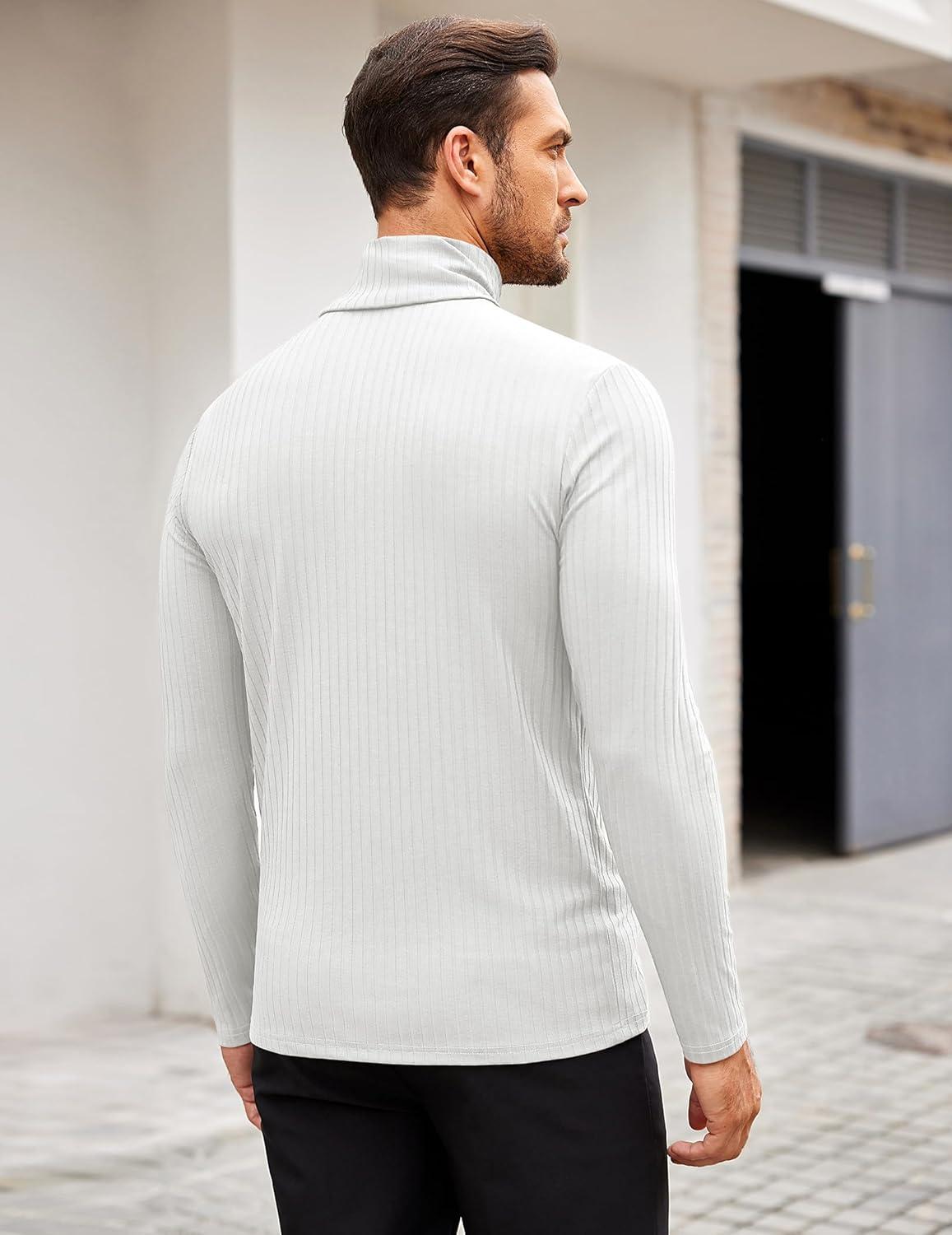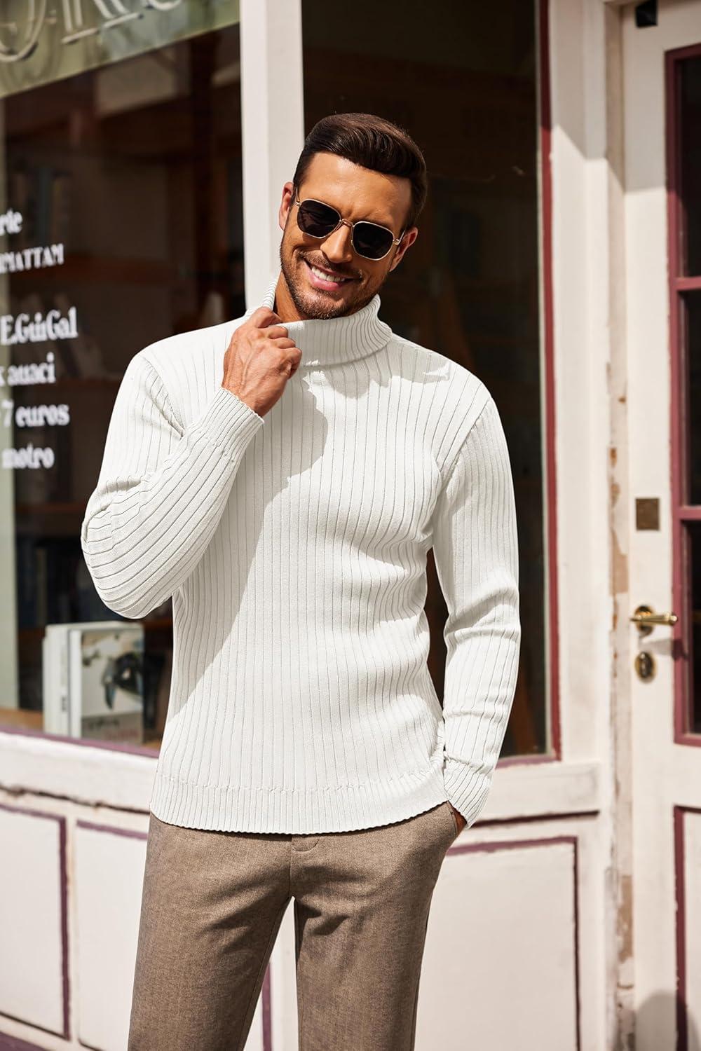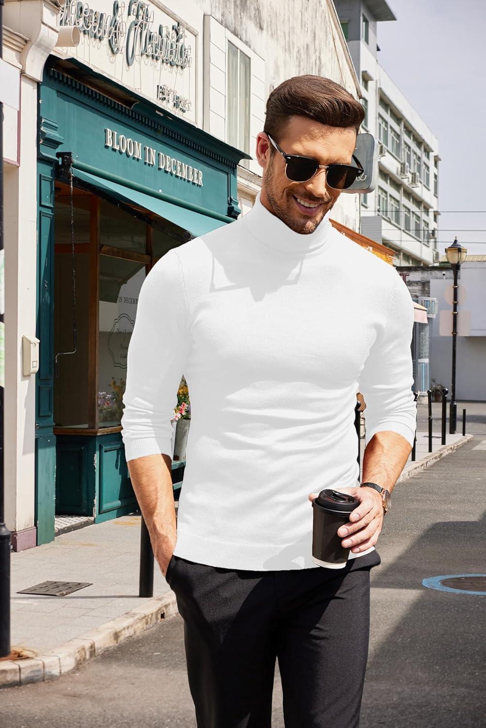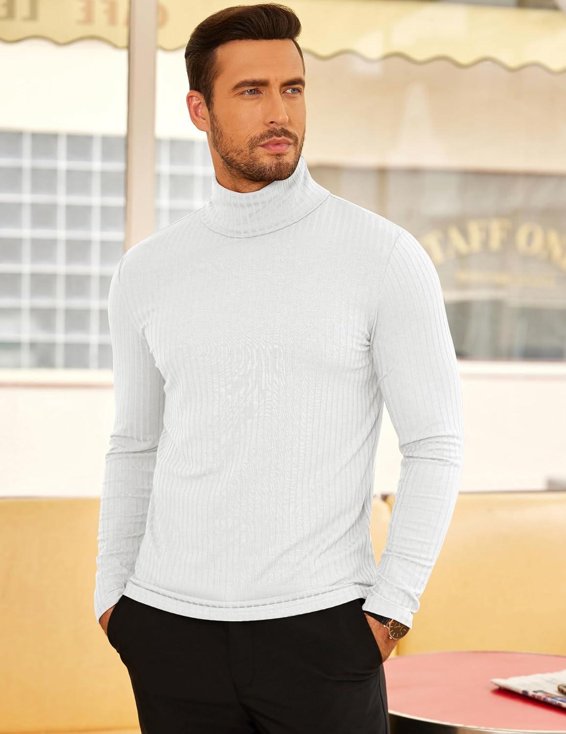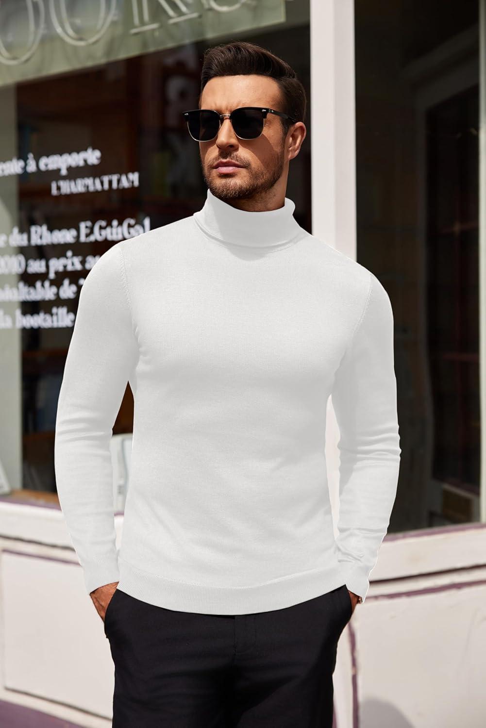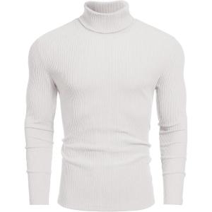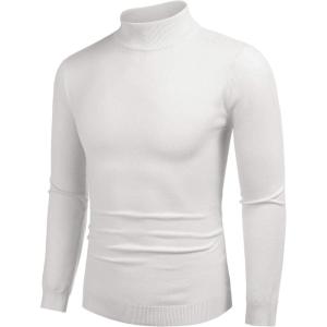 COOFANDY Men’s Turtleneck Sweater Slim Fit Lightweight Basic Ribbed Sweaters(White)