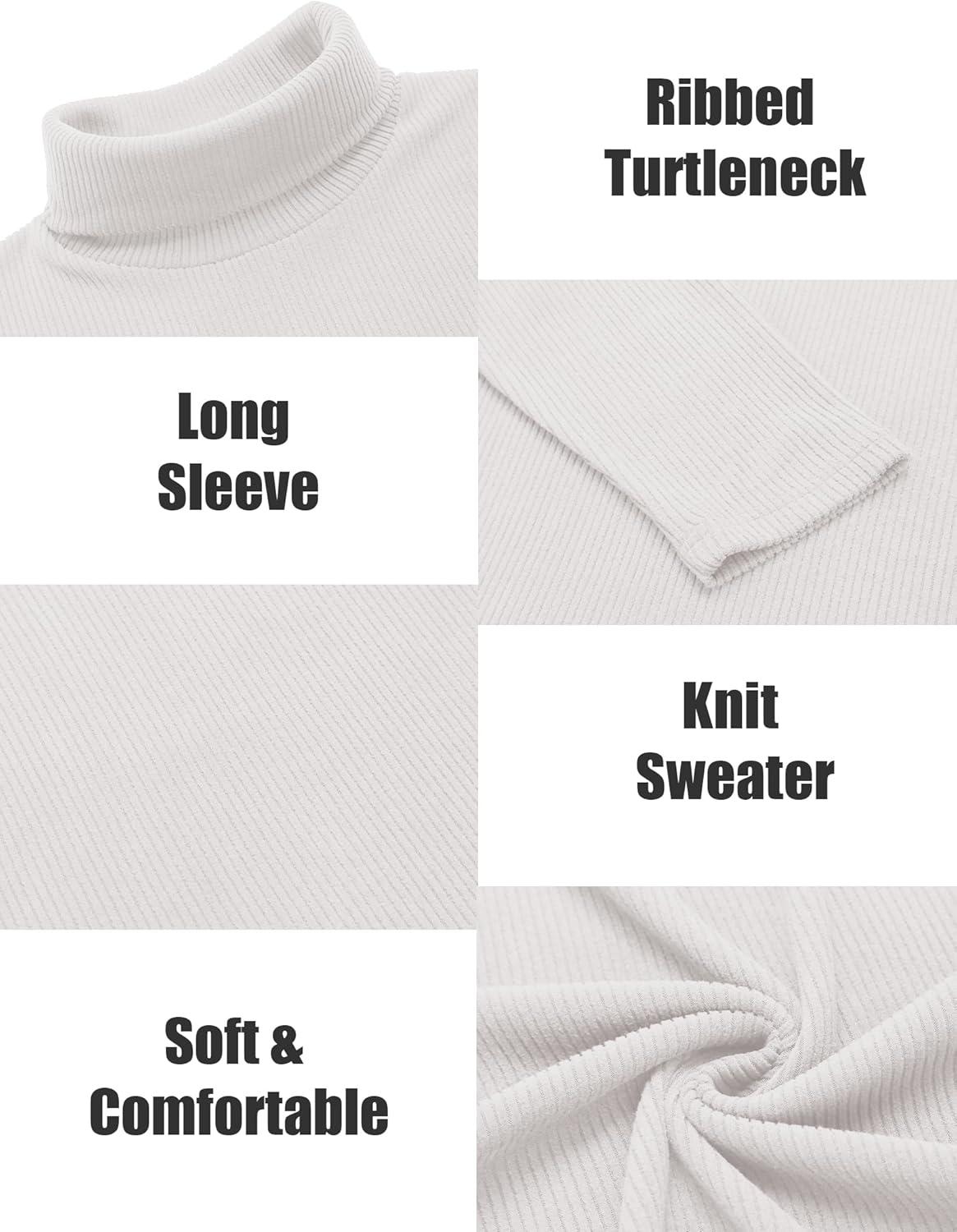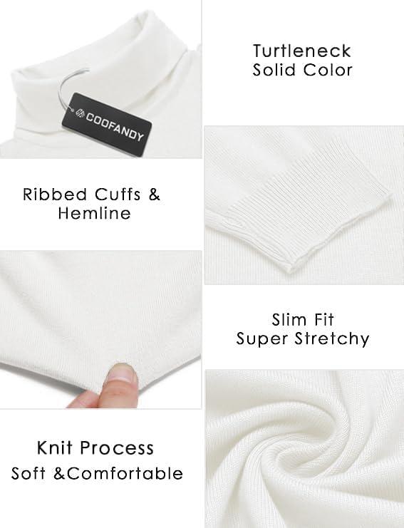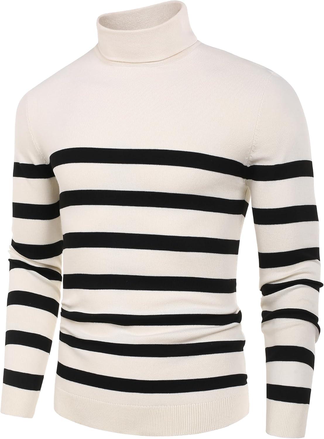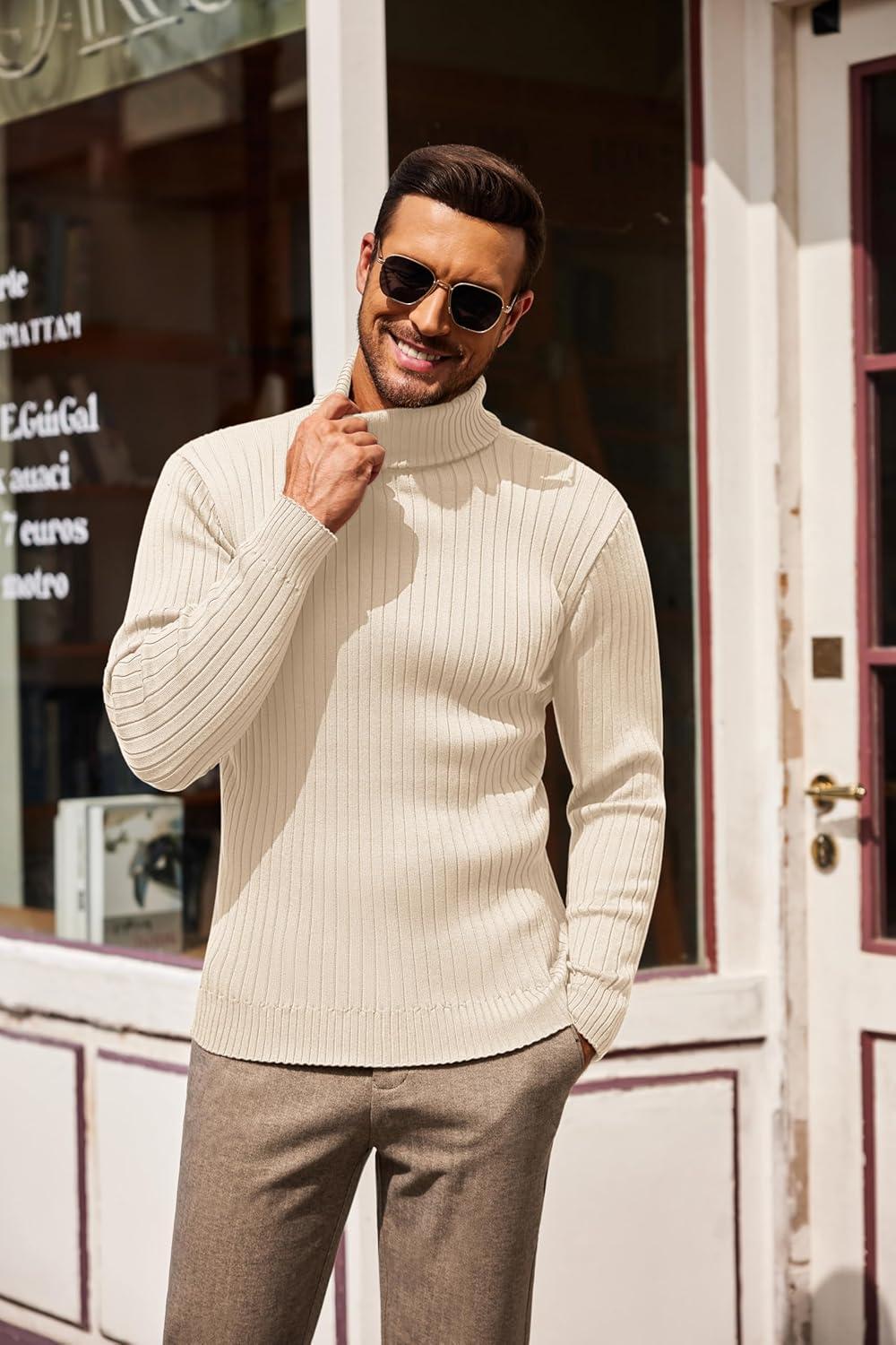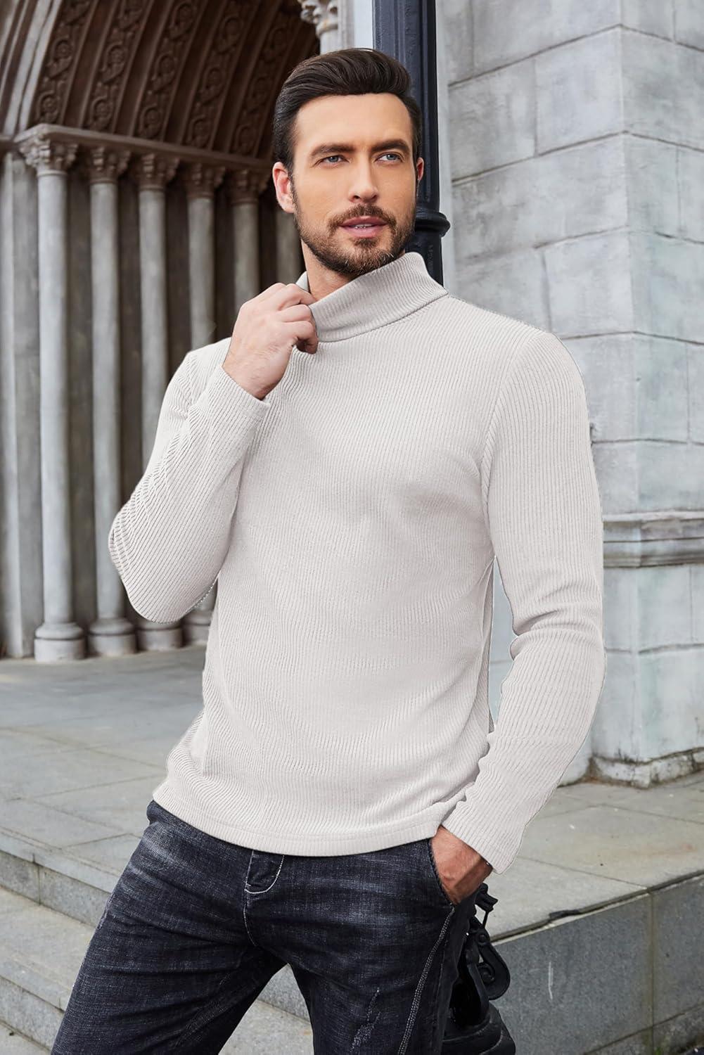 COOFANDY Men’s Turtleneck Sweater Slim Fit Lightweight Basic Ribbed Sweaters(White)