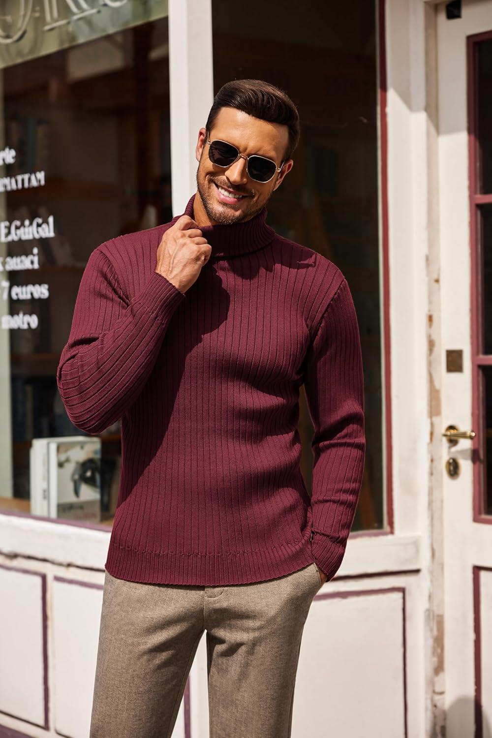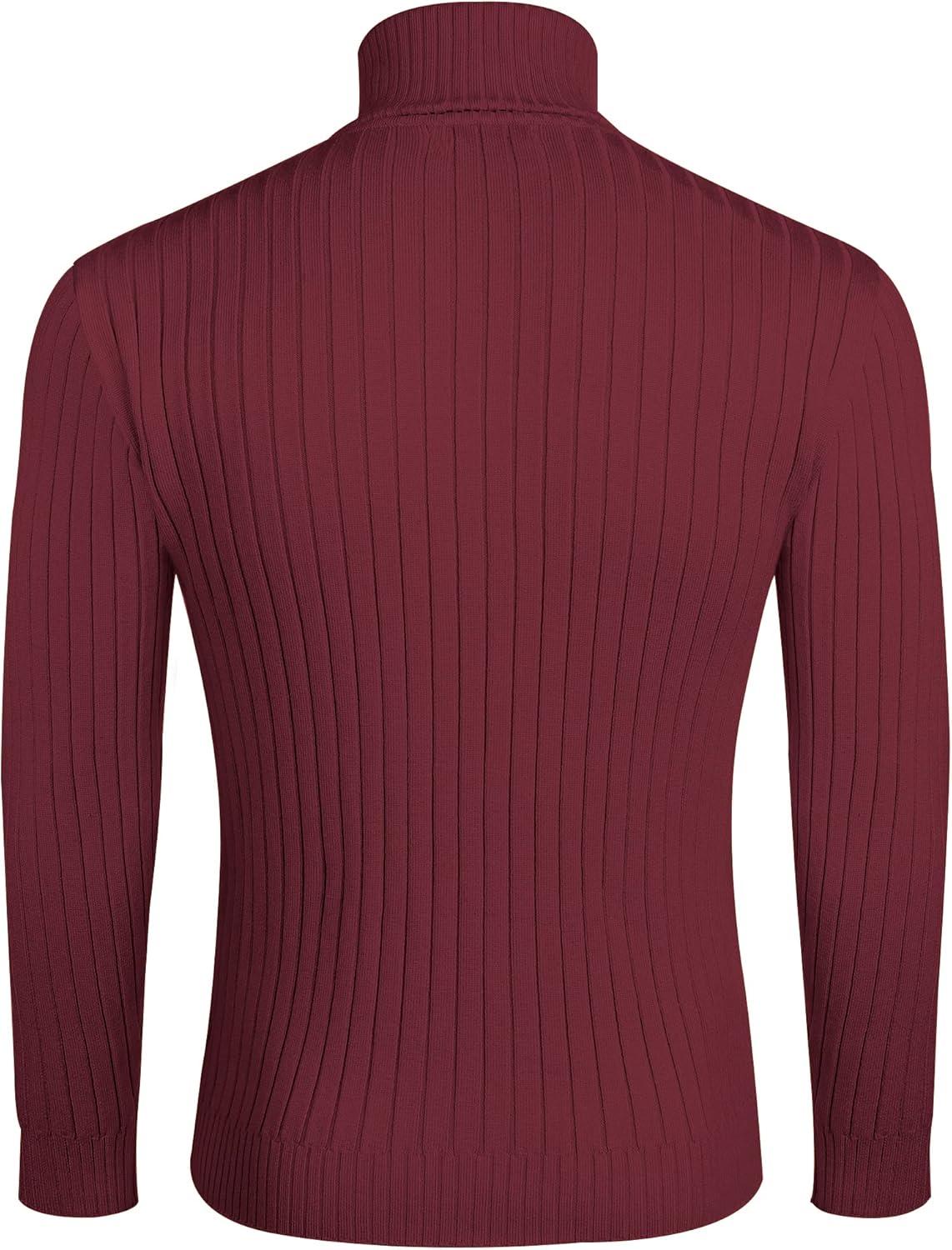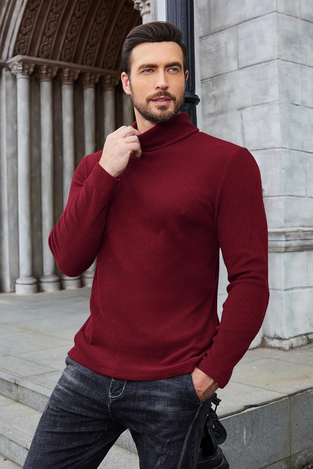 COOFANDY Men’s Turtleneck Sweater Slim Fit Lightweight Basic Ribbed Sweaters(Wine Red)