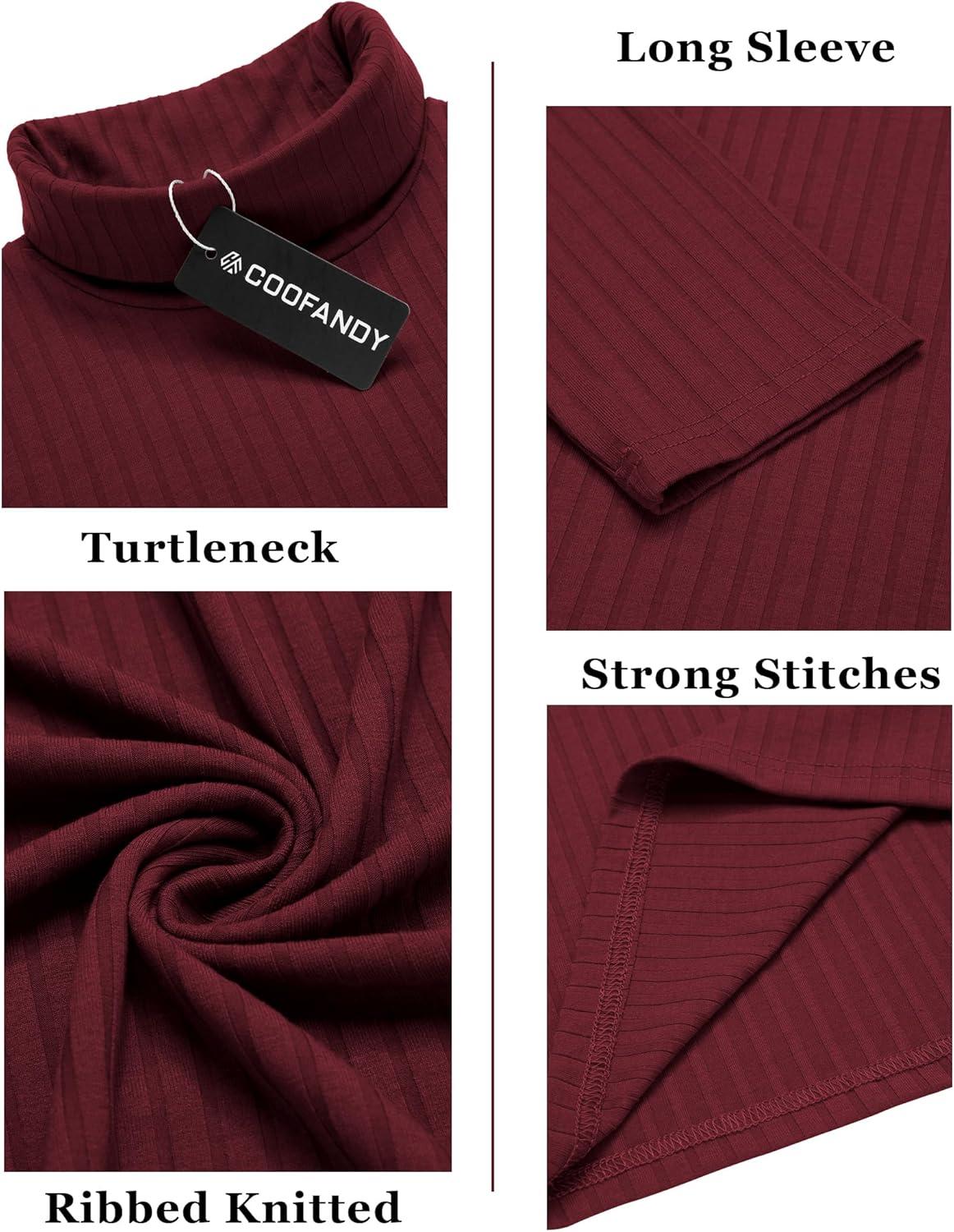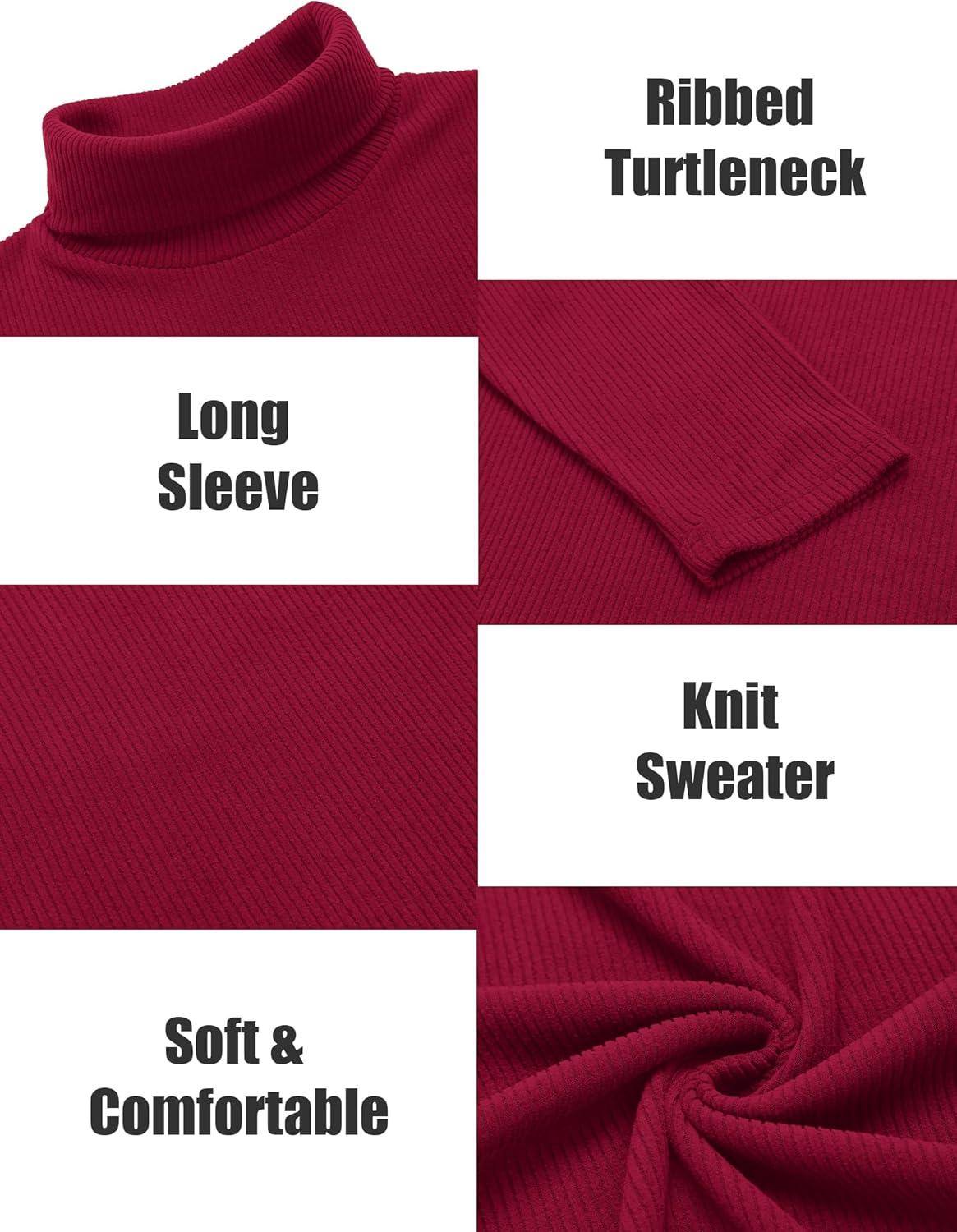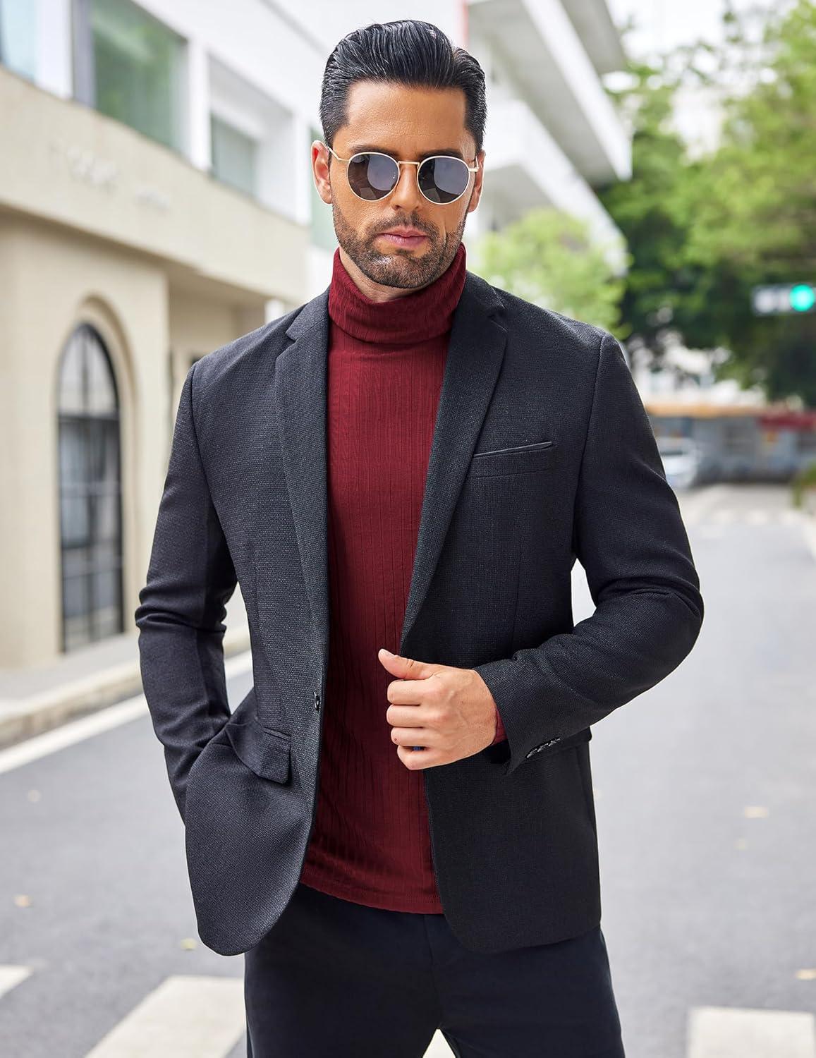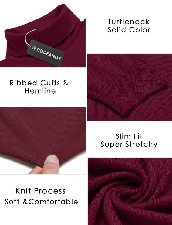COOFANDY Men’s Turtleneck Sweater Slim Fit Lightweight Basic Ribbed Sweaters(Wine Red)