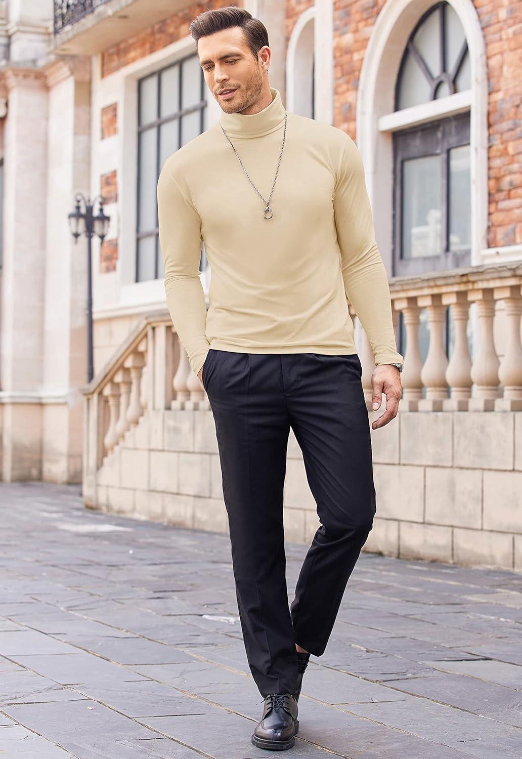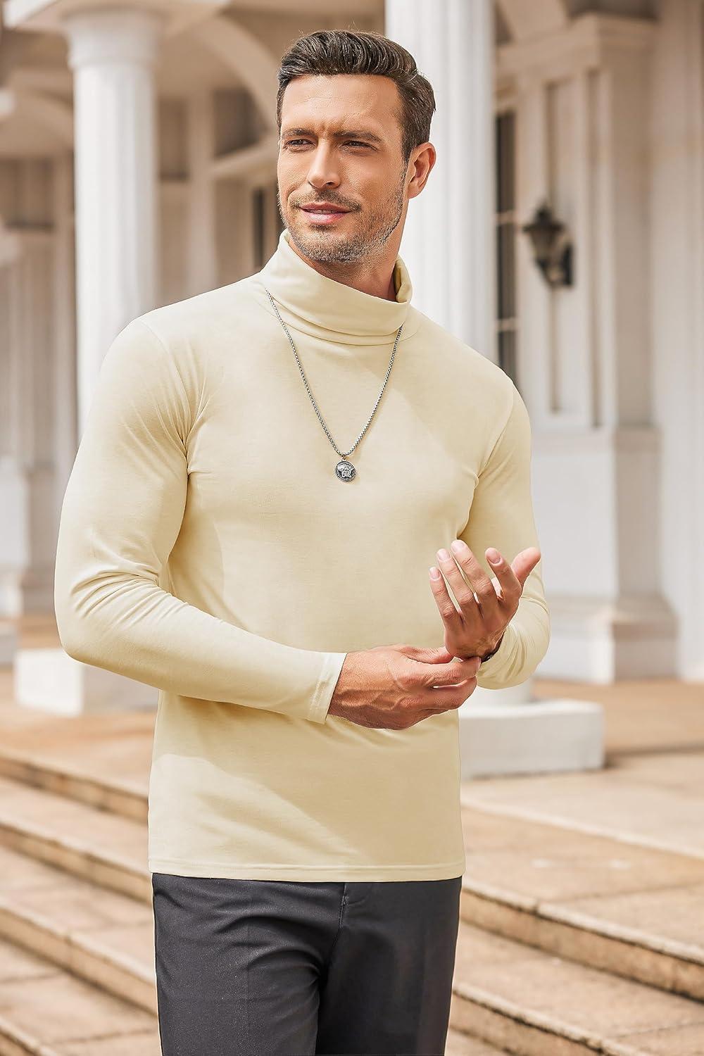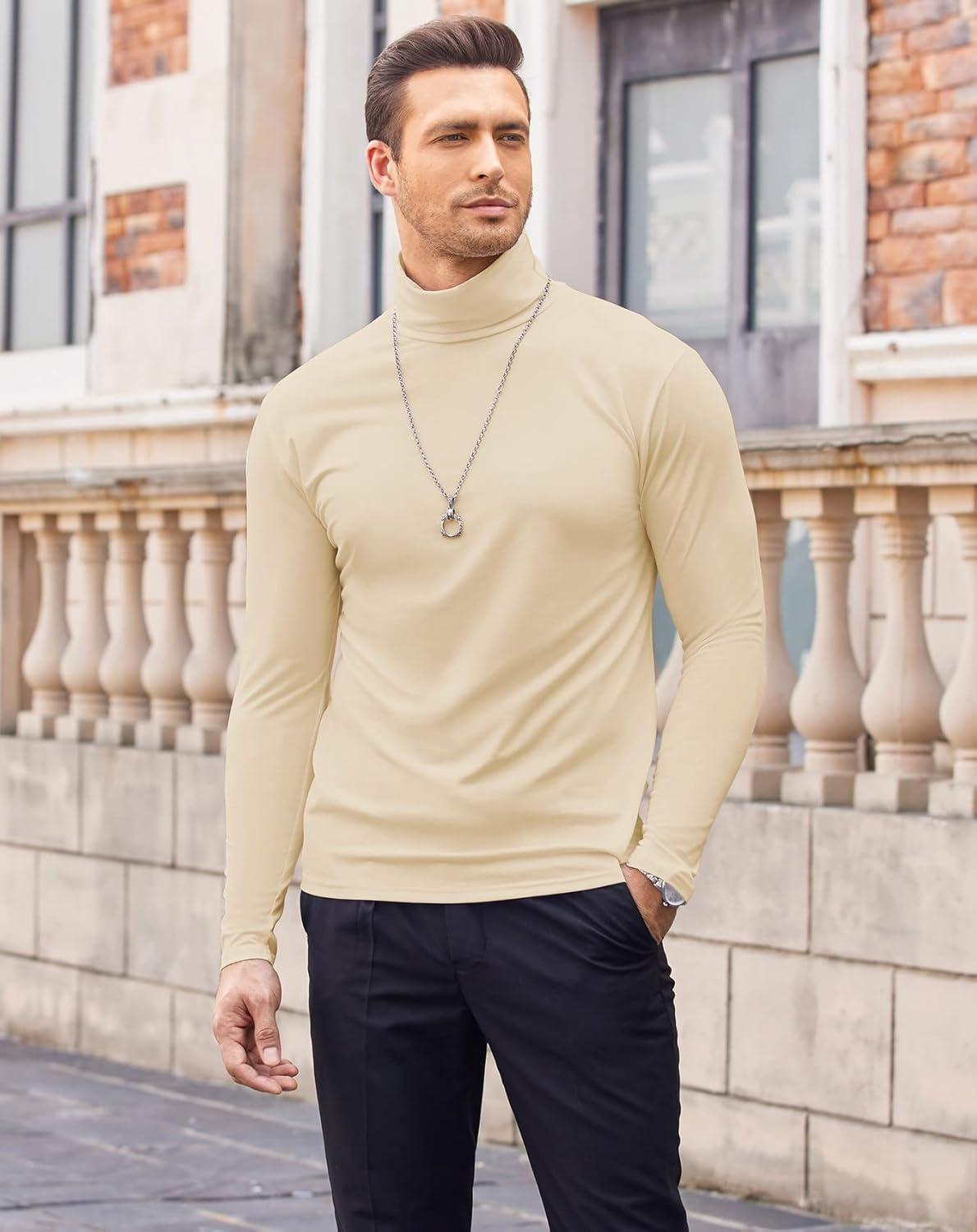 COOFANDY Mens Mock Turtleneck Long Sleeve Shirts Basic Thermal Turtle Neck Undershirt Lightweight Pullover Sweaters Top(Beige)