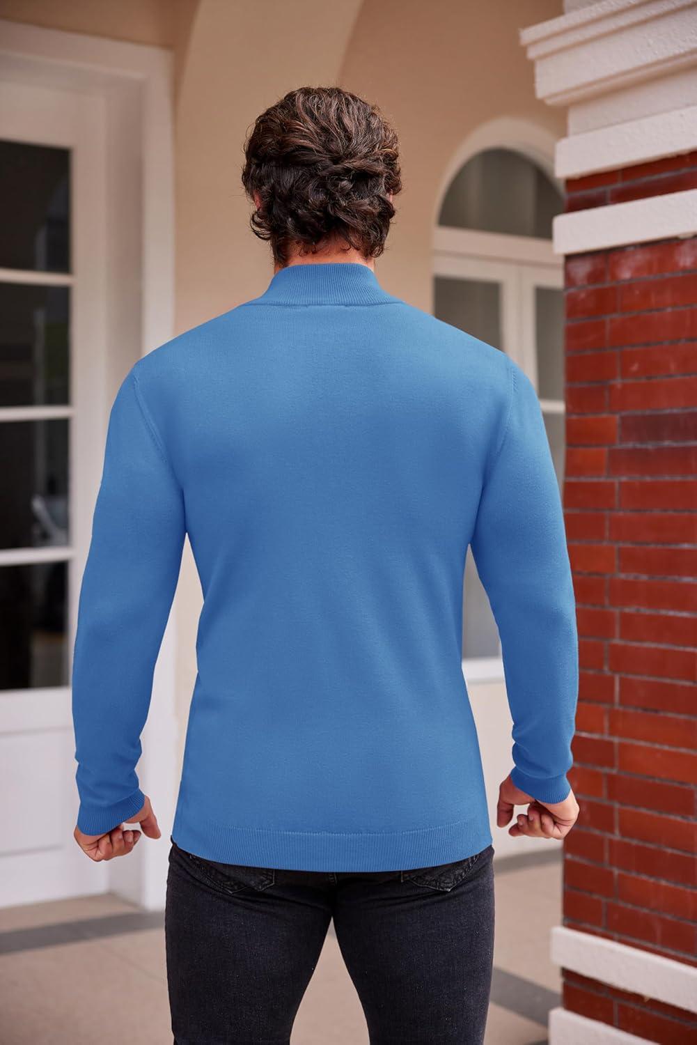 COOFANDY Men’s Mock Turtleneck Sweaters Long Sleeve Casual Knit Shirts Half Neck Thermal Lightweight Pullover Sweater(Denim Blue)