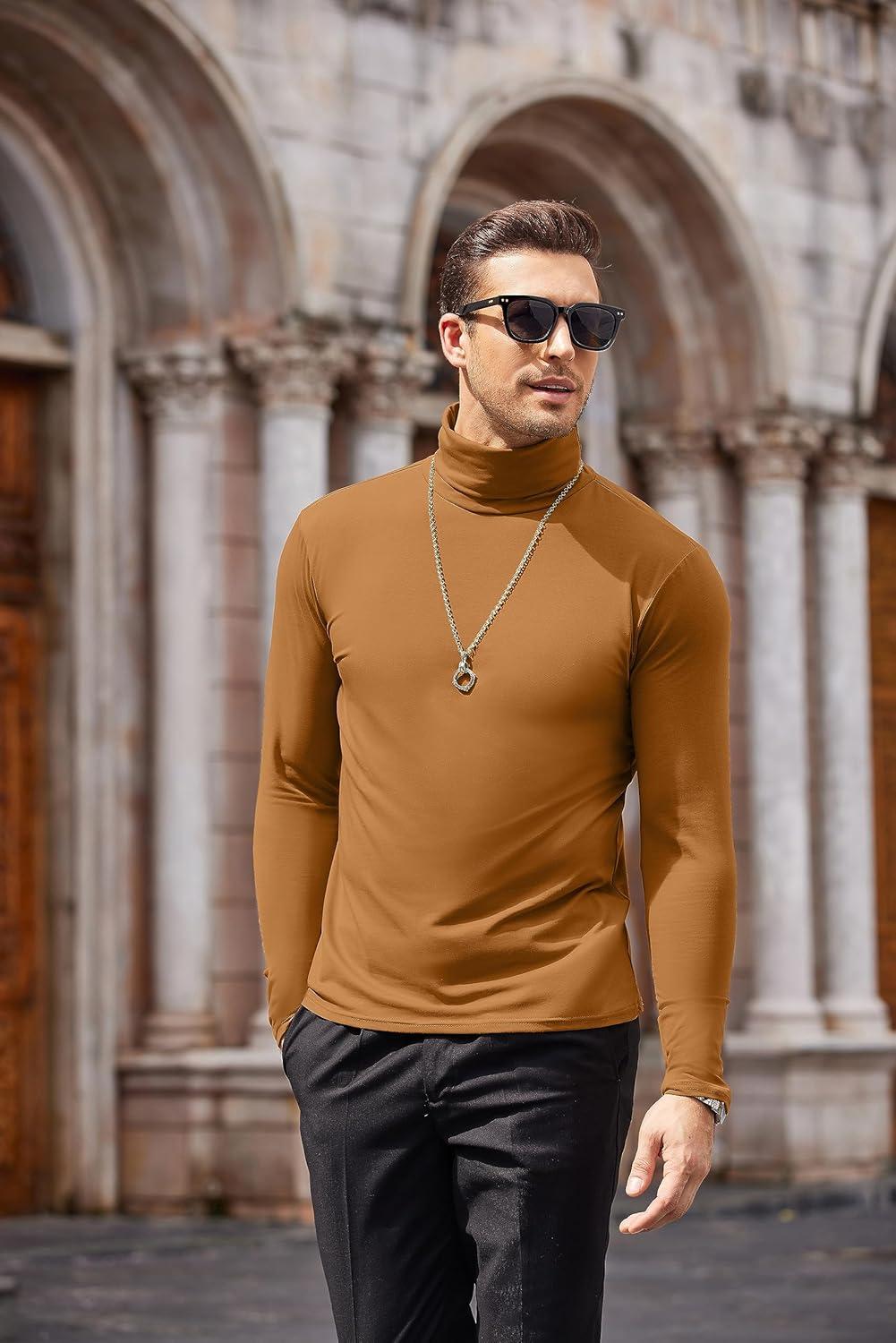 COOFANDY Mens Mock Turtleneck Long Sleeve Shirts Basic Thermal Turtle Neck Undershirt Lightweight Pullover Sweaters Top(Caramel)