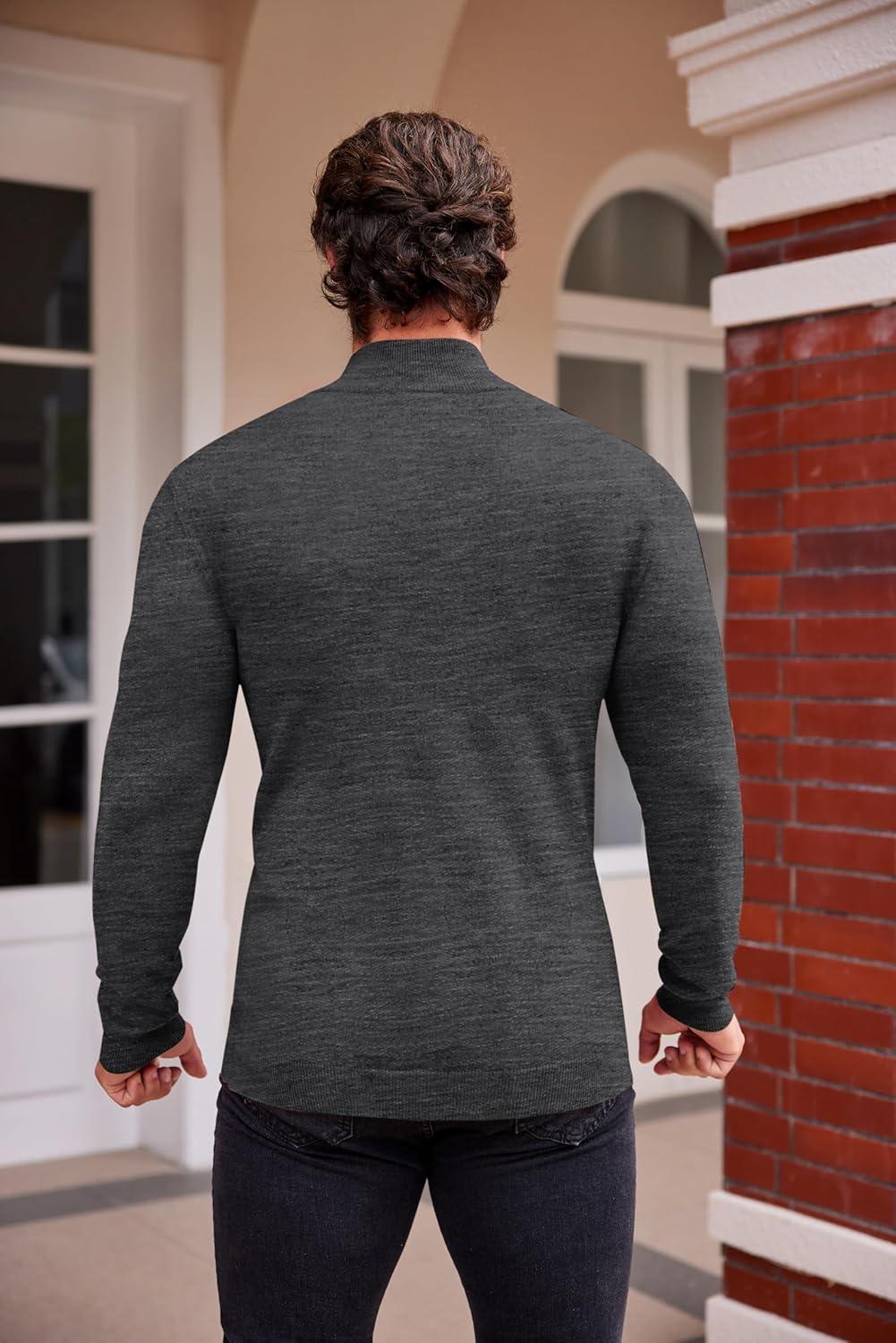 COOFANDY Mens Mock Turtleneck Slim Fit Pullover Sweater Casual Basic Knitted Thermal Sweaters(Dark Gray)