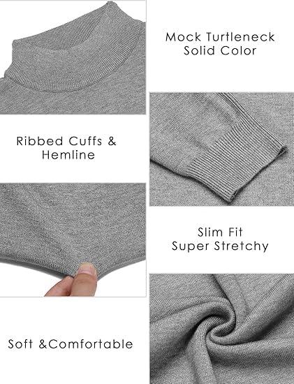 COOFANDY Mens Mock Turtleneck Long Sleeve Shirts Basic Thermal Turtle Neck Undershirt Lightweight Pullover Sweaters Top(Grey)