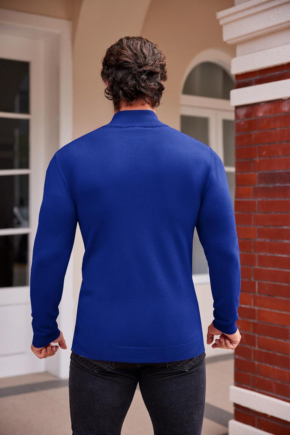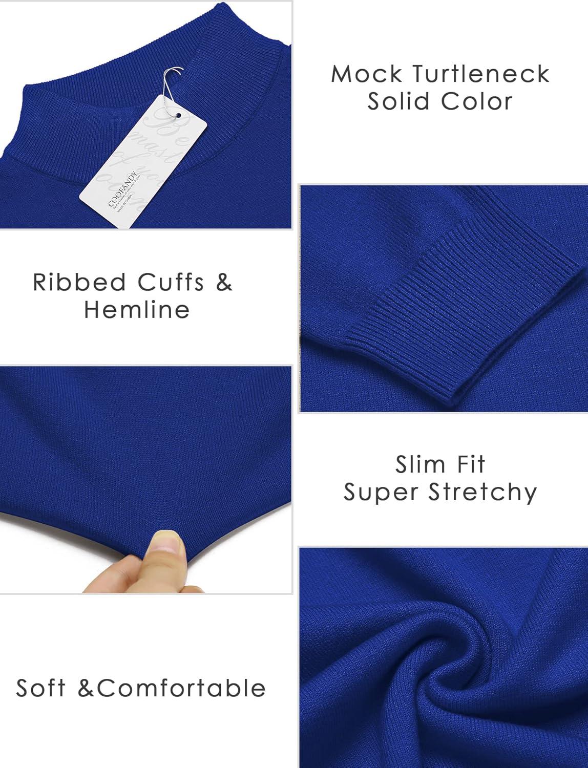 COOFANDY Mens Mock Turtleneck Slim Fit Pullover Sweater Casual Basic Knitted Thermal Sweaters(Royal Blue)