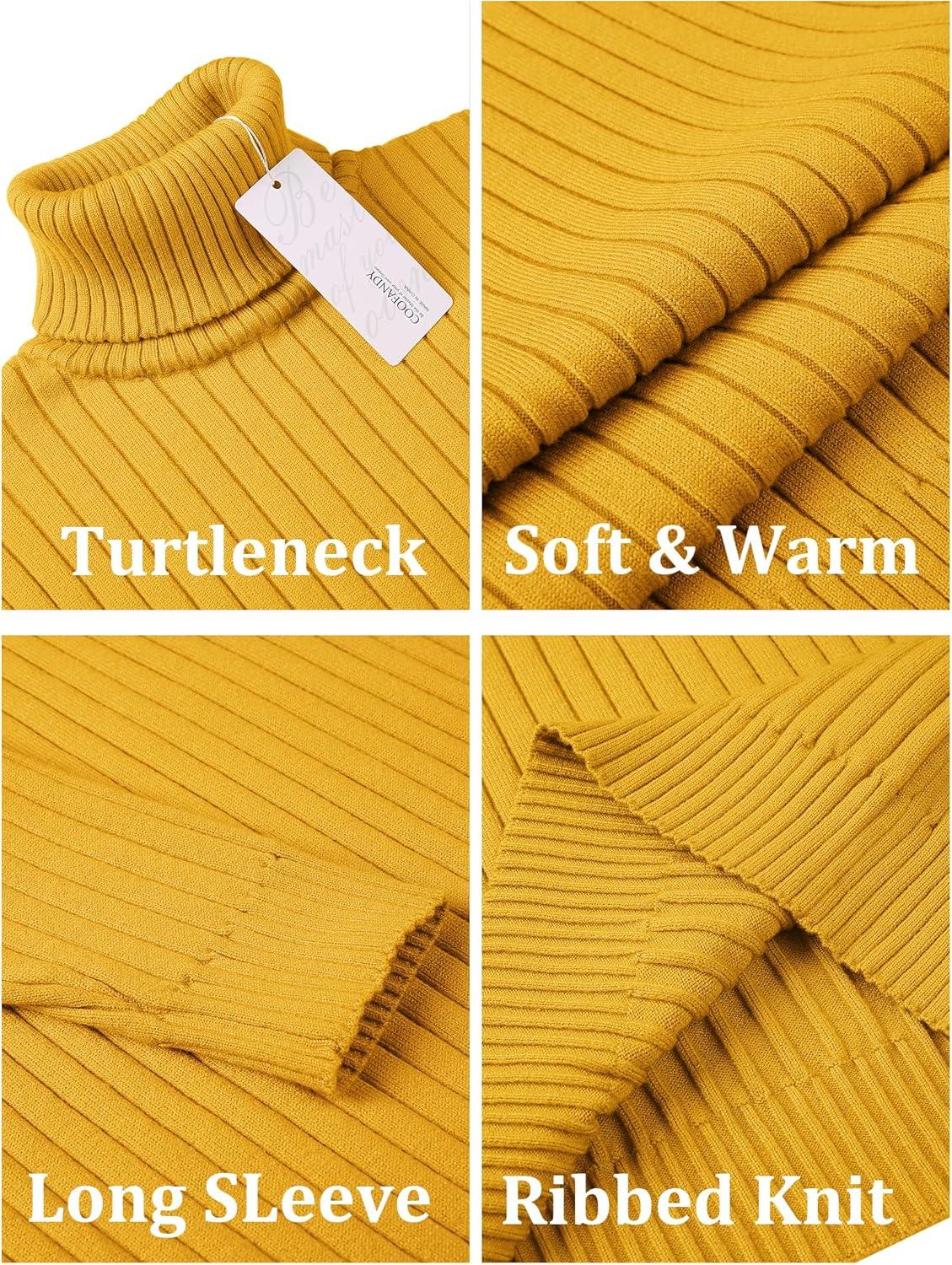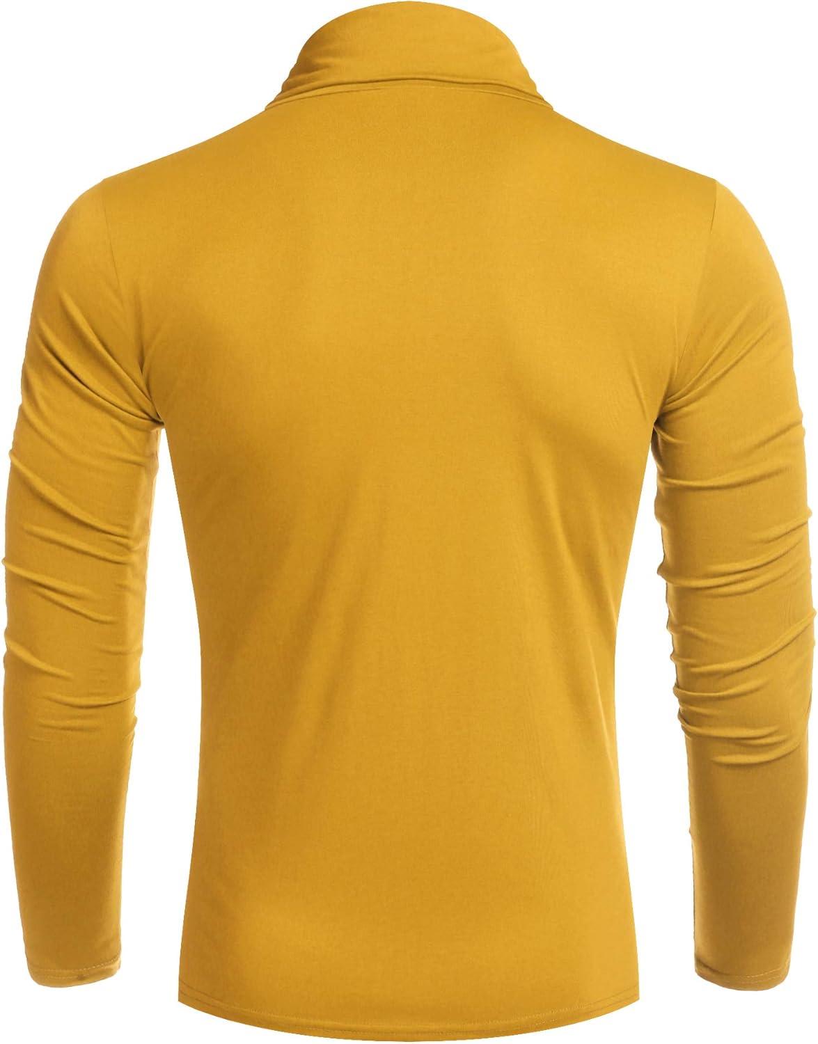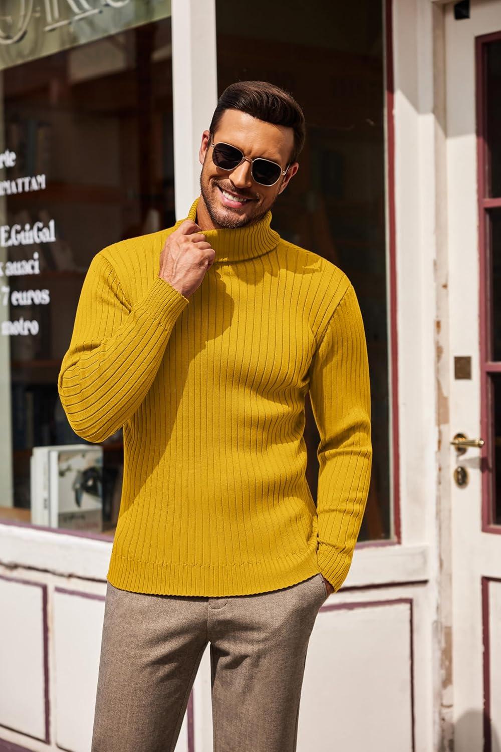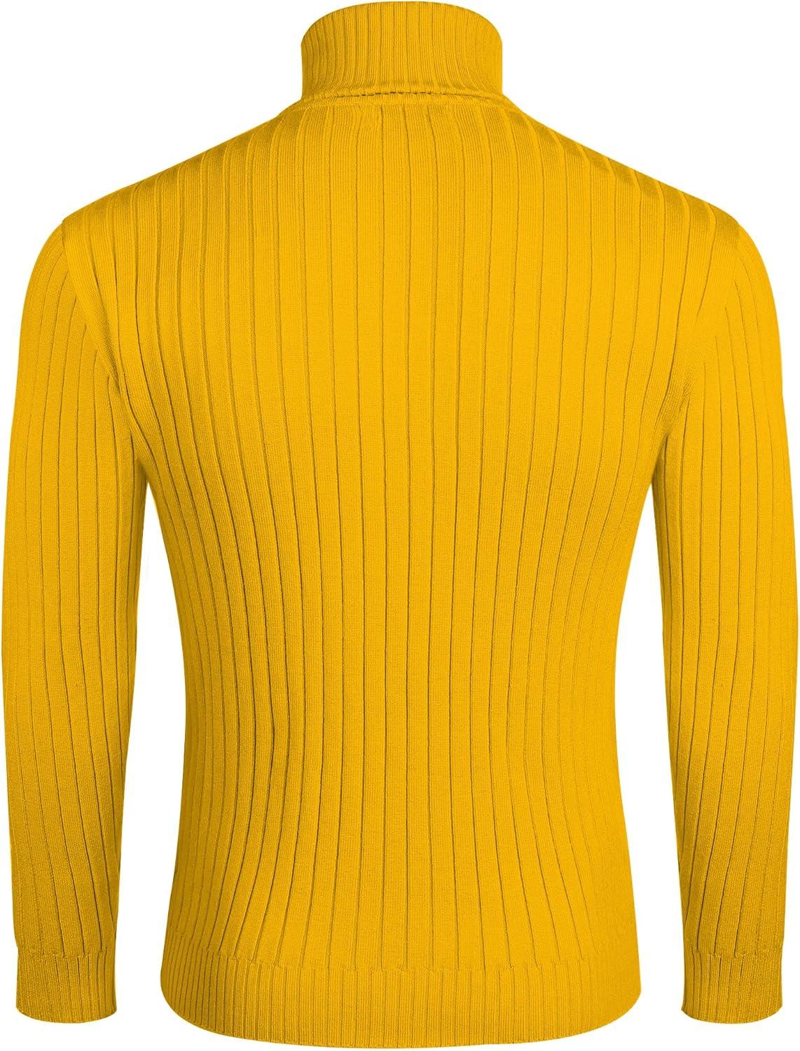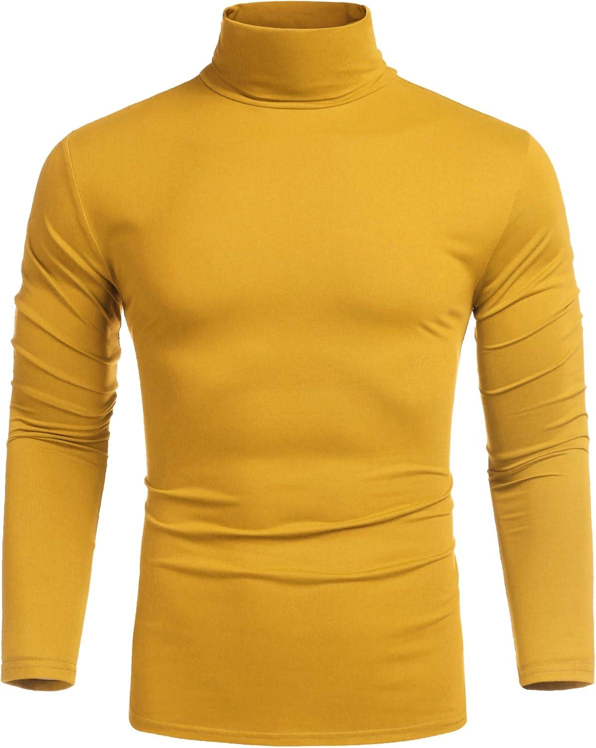 COOFANDY Men’s Slim Fit Turtleneck Sweater Casual Pullover Sweater Lightweight Ribbed Sweater(Yellow)