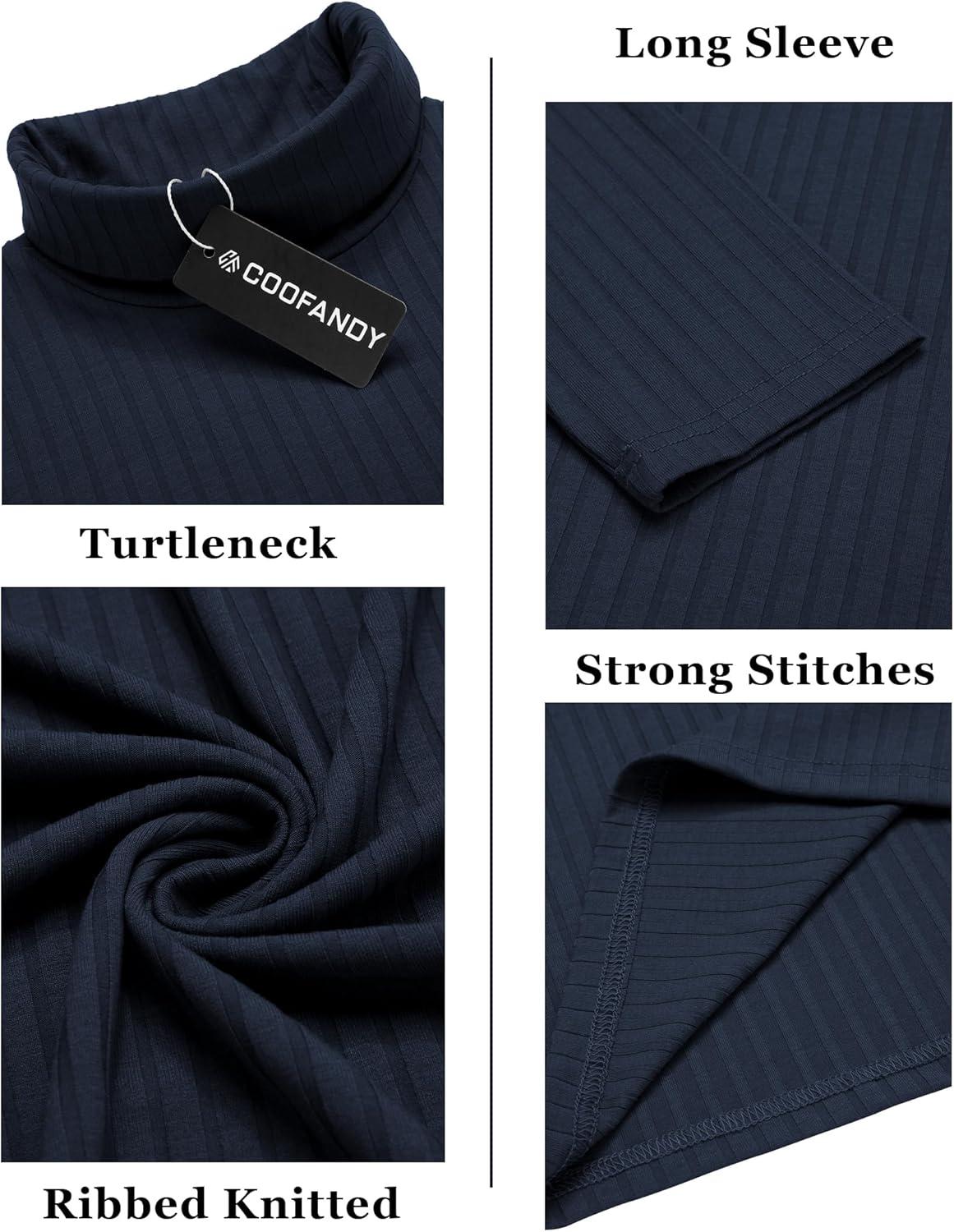 COOFANDY Mens Mock Turtleneck Long Sleeve Shirts Basic Thermal Turtle Neck Undershirt Lightweight Pullover Sweaters Top(Dark Blue)