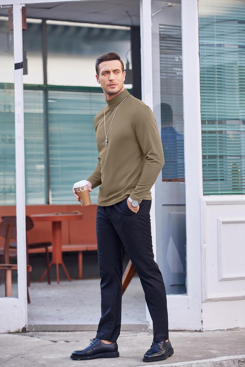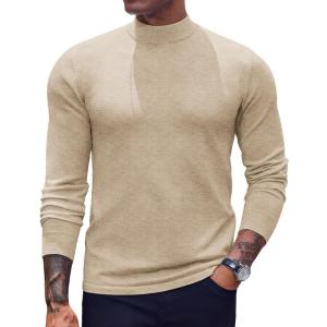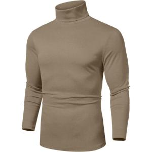COOFANDY Mens Mock Turtleneck Long Sleeve Shirts Basic Thermal Turtle Neck Undershirt Lightweight Pullover Sweaters Top(Khaki)