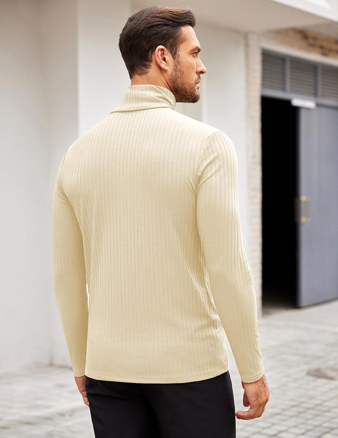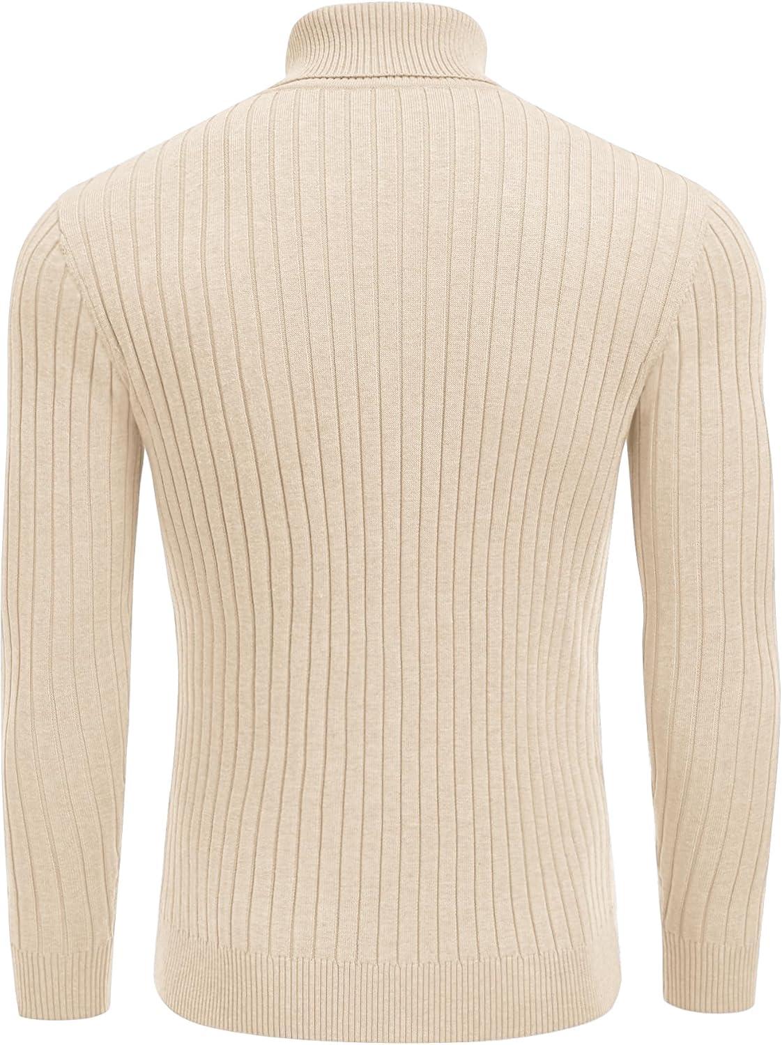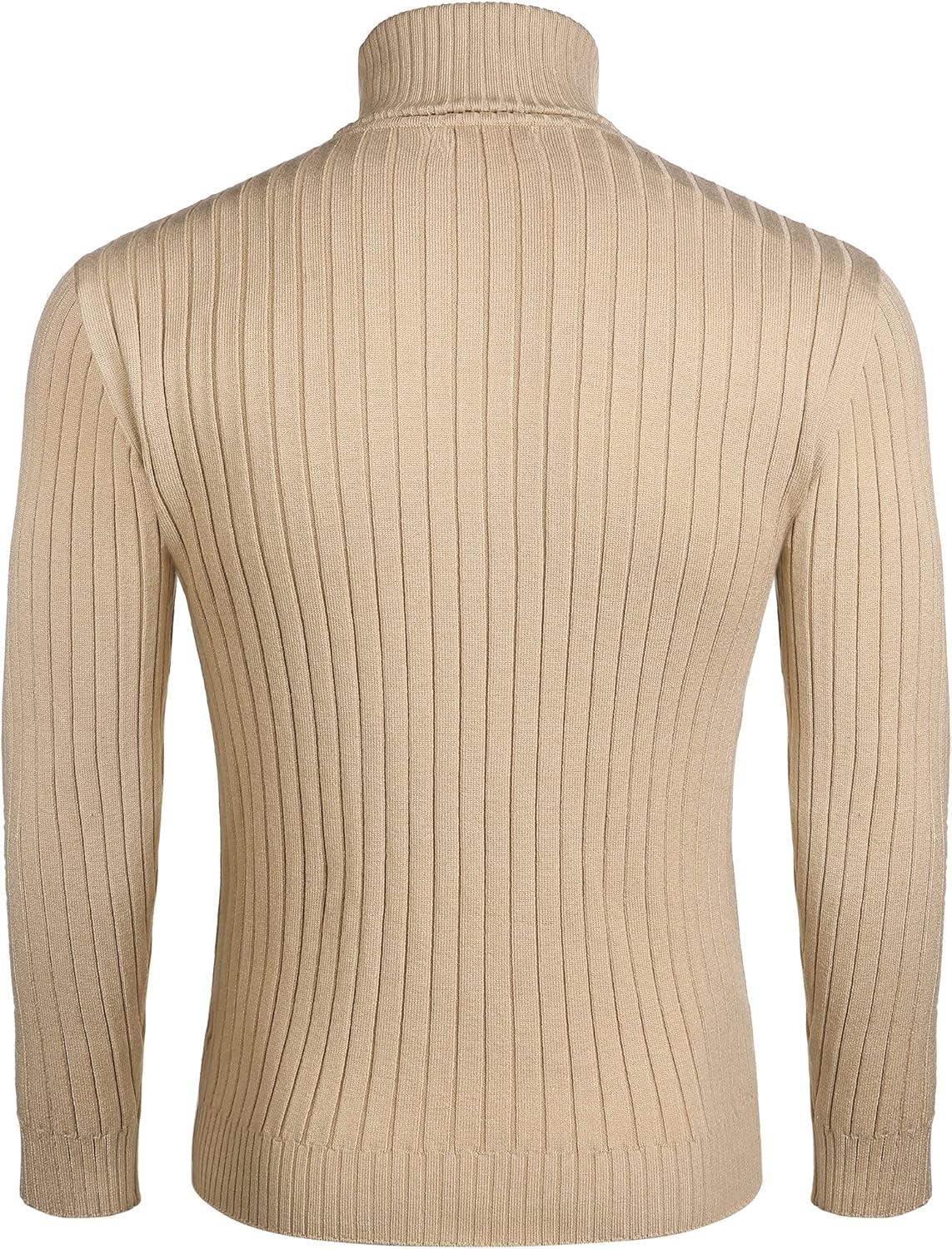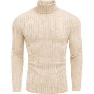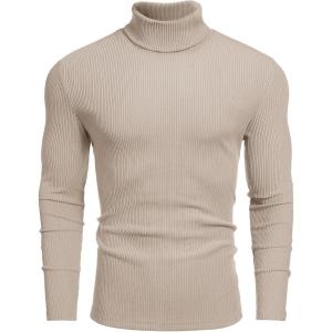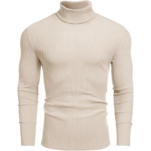 COOFANDY Men’s Turtleneck Sweater Slim Fit Lightweight Basic Ribbed Sweaters(Beige)