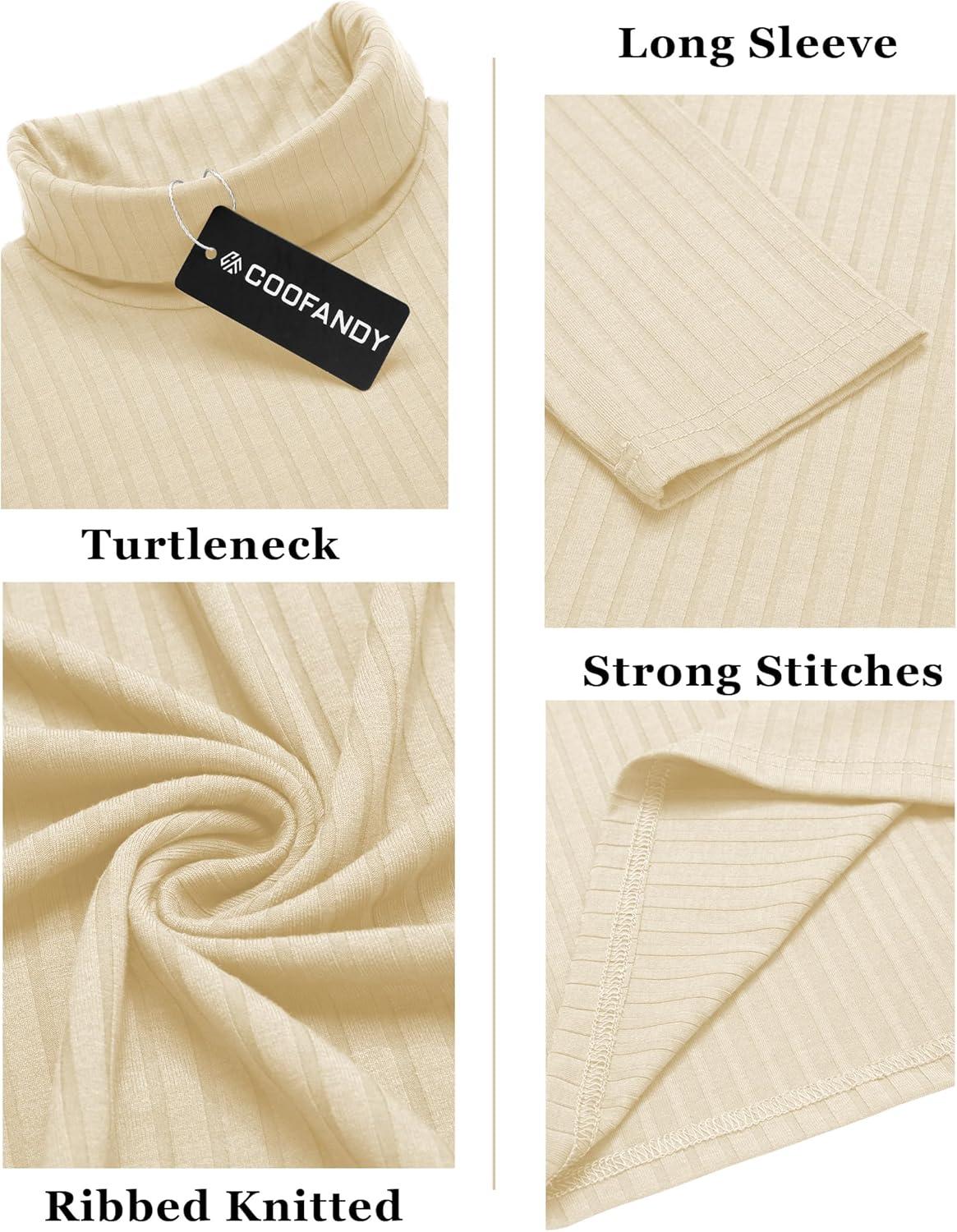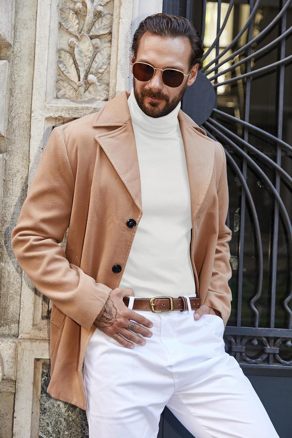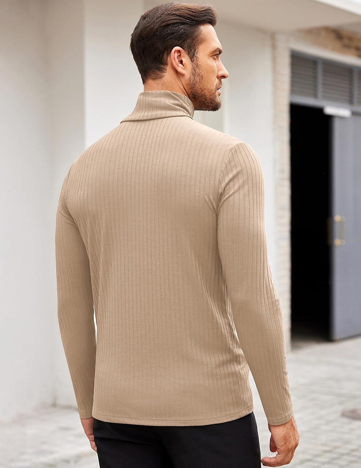 COOFANDY Men’s Turtleneck Sweater Slim Fit Lightweight Basic Ribbed Sweaters(Beige)