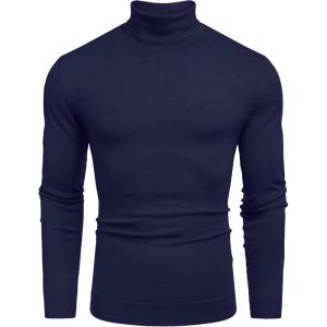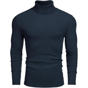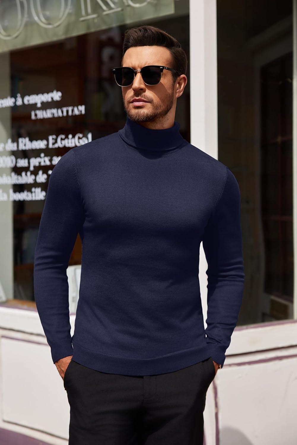 COOFANDY Men’s Slim Fit Turtleneck Sweater Casual Pullover Sweater Lightweight Ribbed Sweater(Navy Blue)
