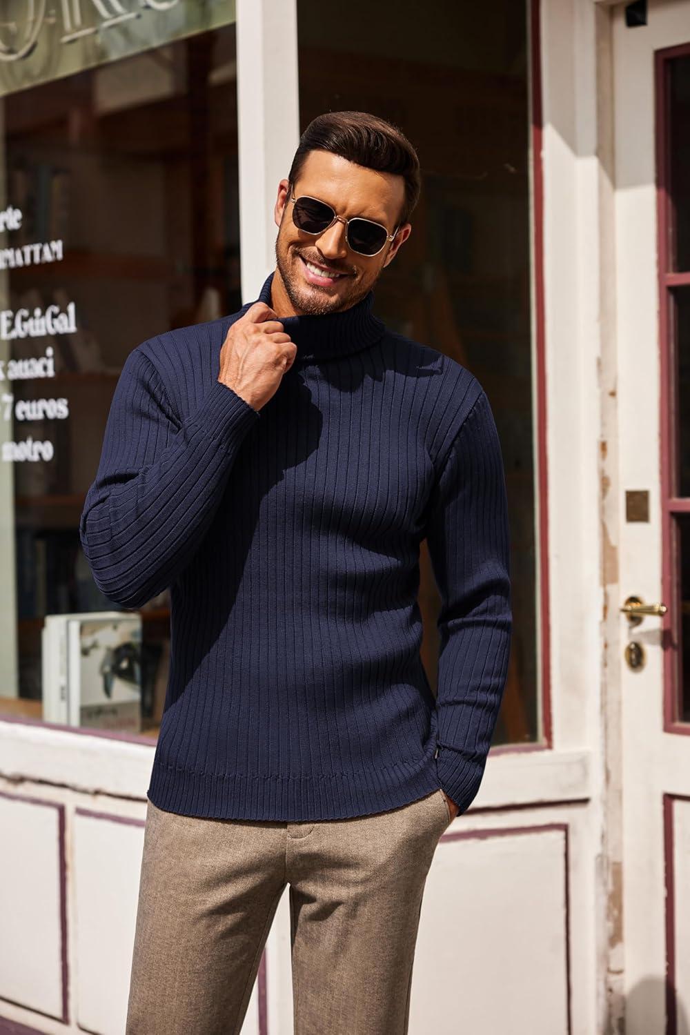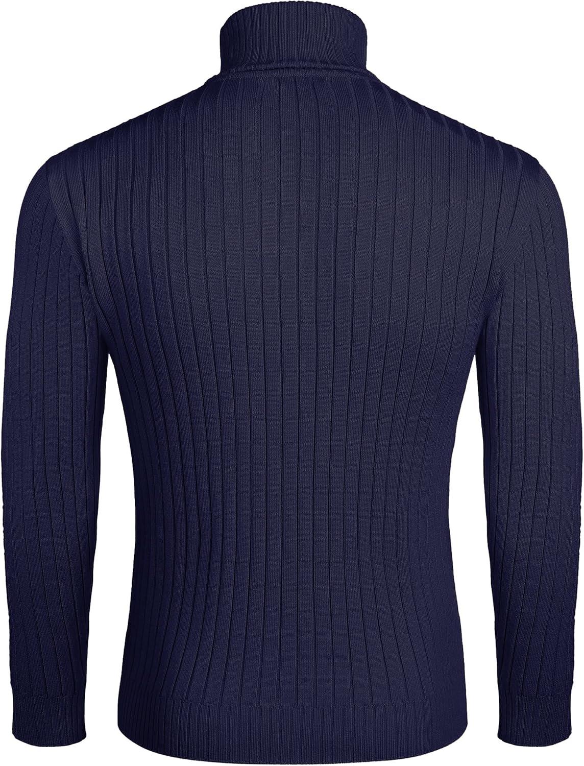 COOFANDY Mens Ribbed Slim Fit Knitted Pullover Casual Turtleneck Sweater(Navy Blue)