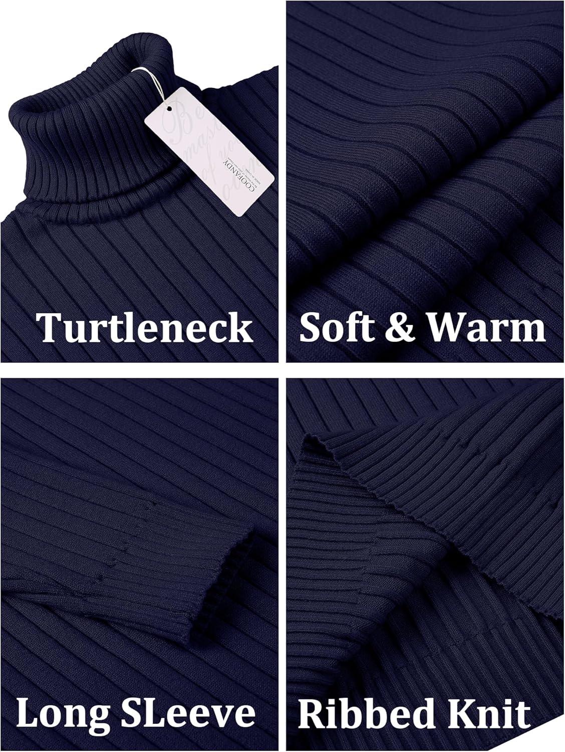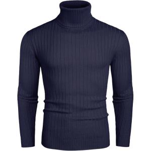 COOFANDY Men’s Ribbed Turtleneck Sweater Casual Basic Long Sleeve Knitted Pullover Sweater(Navy Blue)