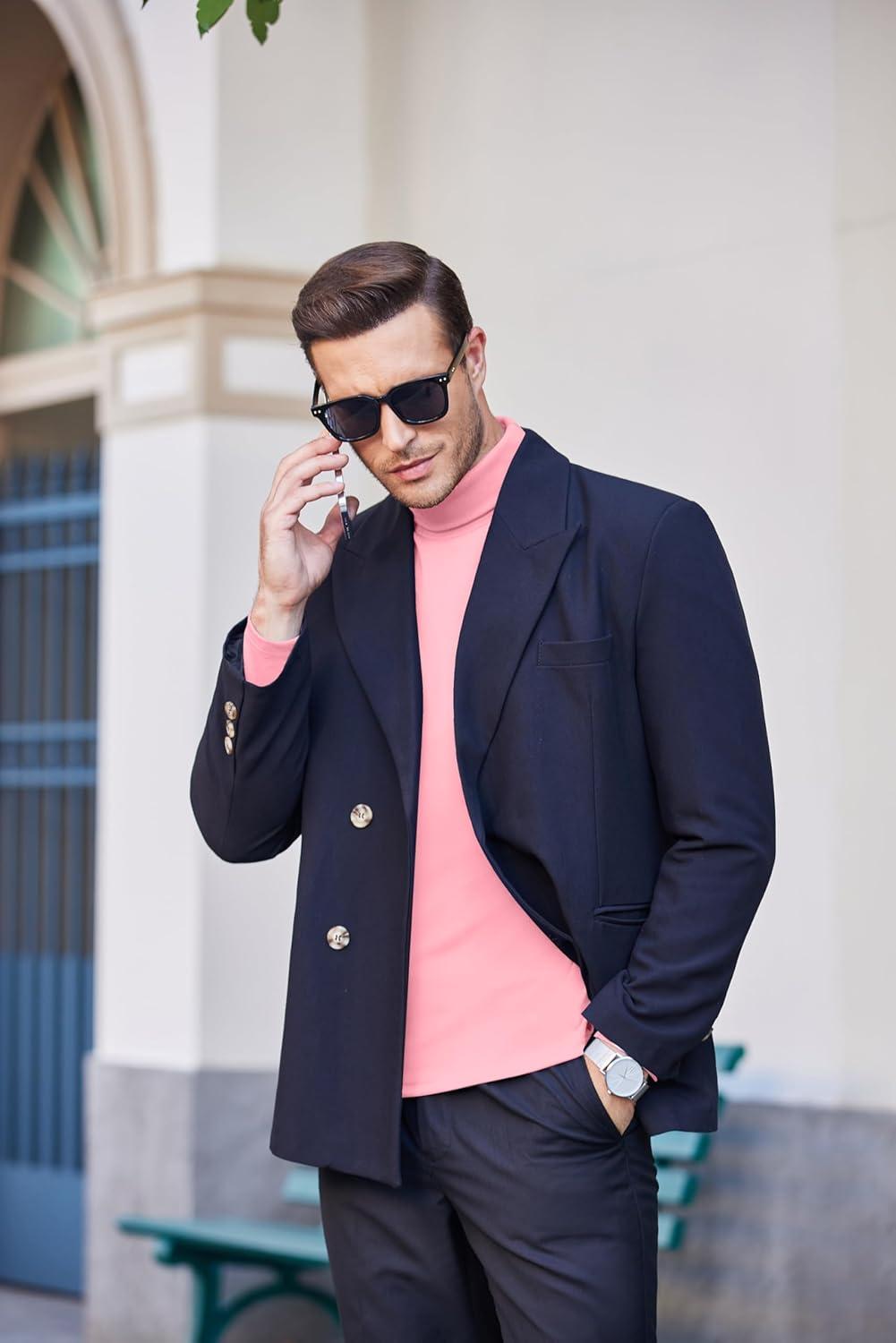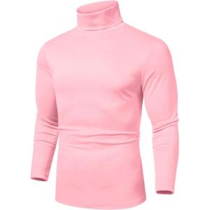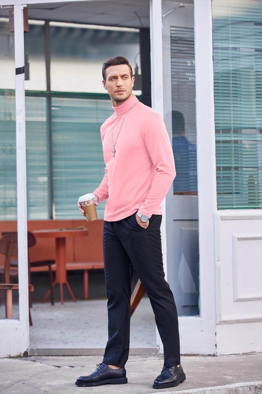 COOFANDY Men’s Slim Fit Turtleneck Sweater Casual Basic Knitted Long Sleeve Pullover Sweater(Pink)