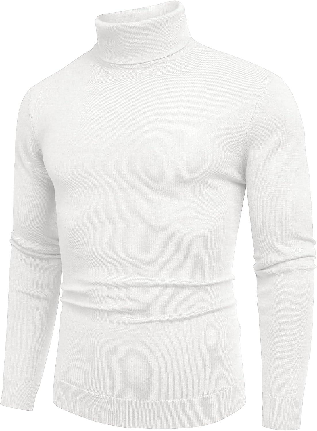 COOFANDY Men’s Slim Fit Turtleneck Sweater Casual Basic Knitted Long Sleeve Pullover Sweater(White)