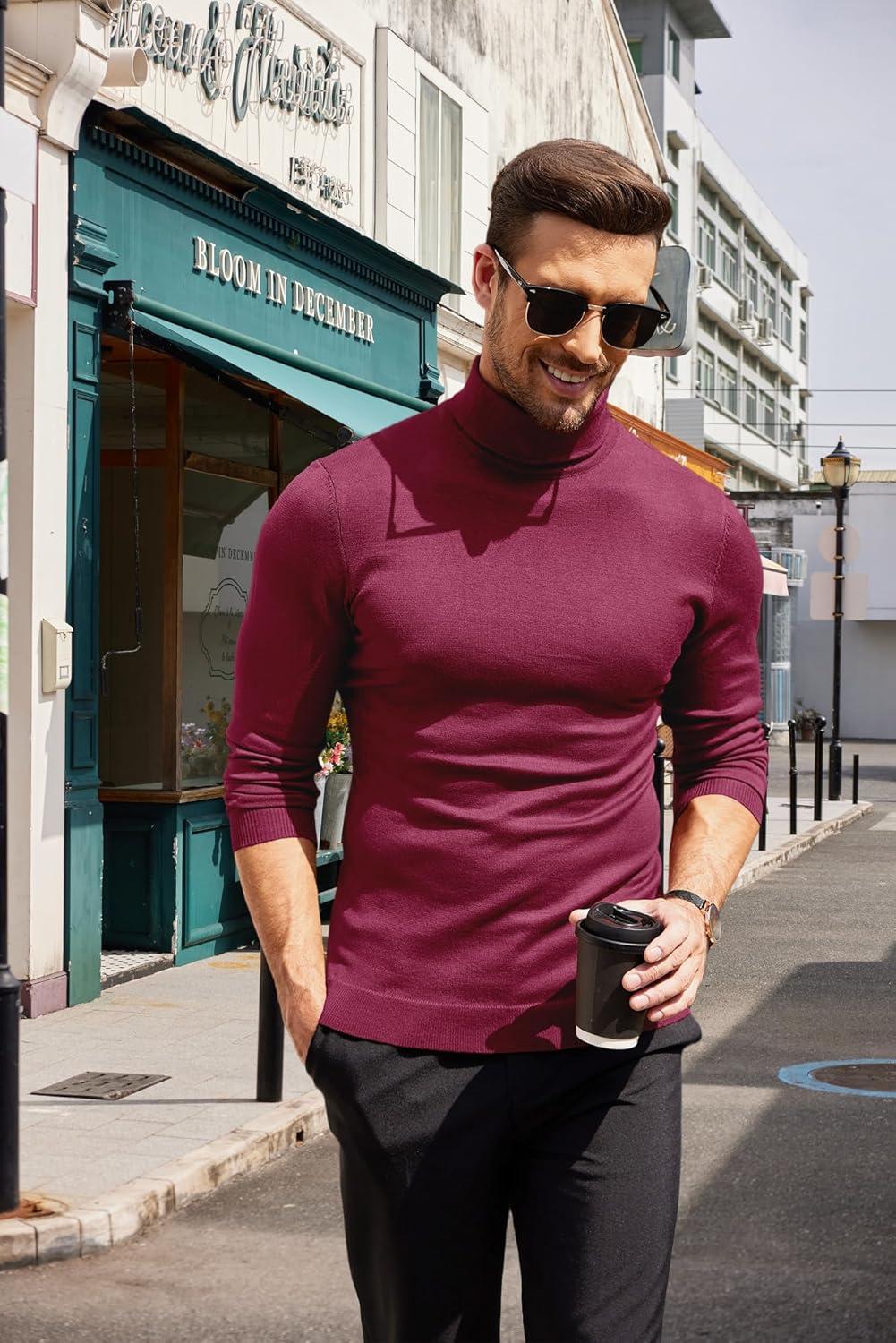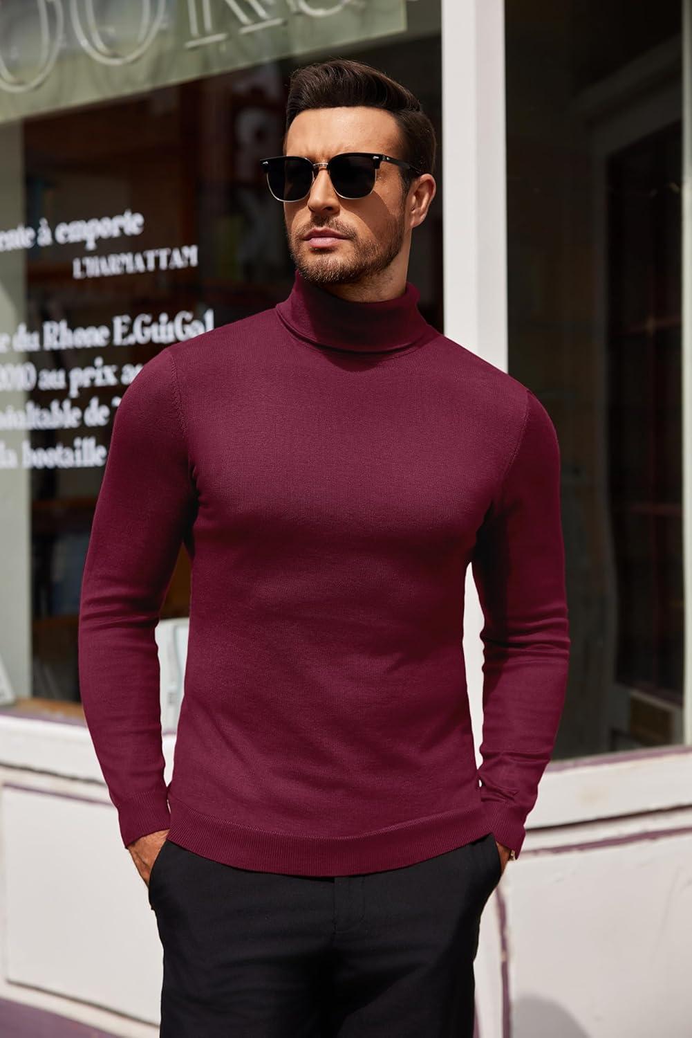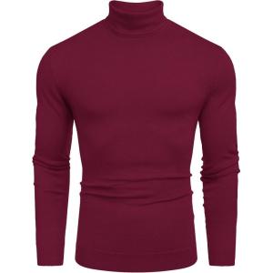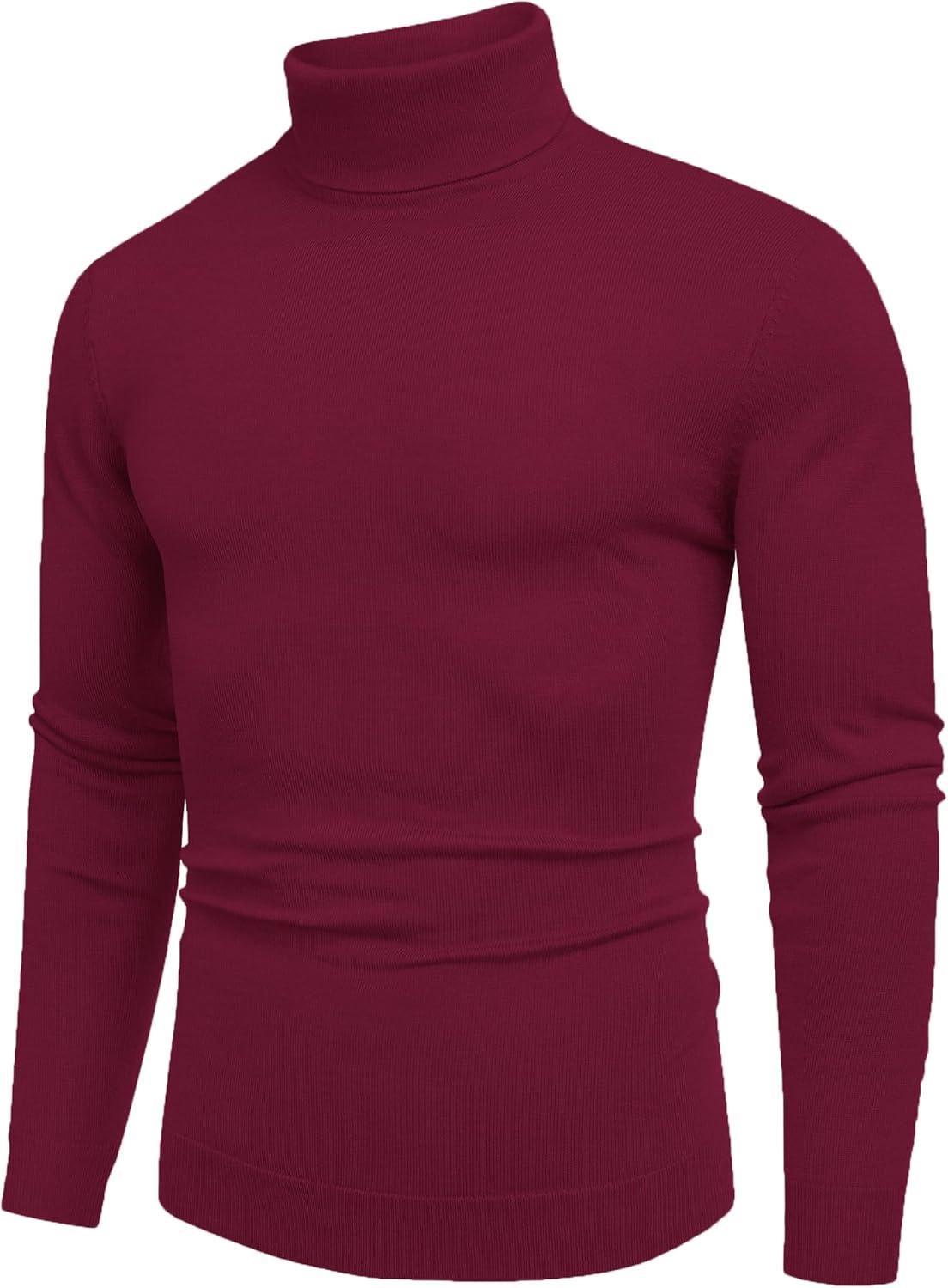 COOFANDY Men’s Slim Fit Turtleneck Sweater Casual Basic Knitted Long Sleeve Pullover Sweater(Wine Red)