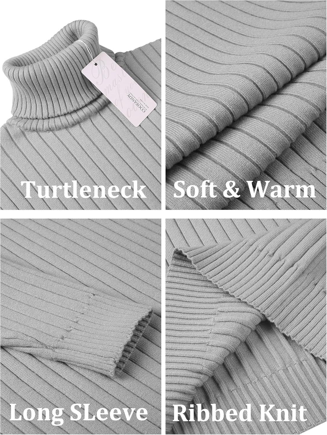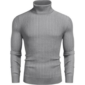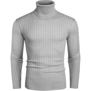COOFANDY Men’s Ribbed Turtleneck Sweater Casual Basic Long Sleeve Knitted Pullover Sweater(Gray)