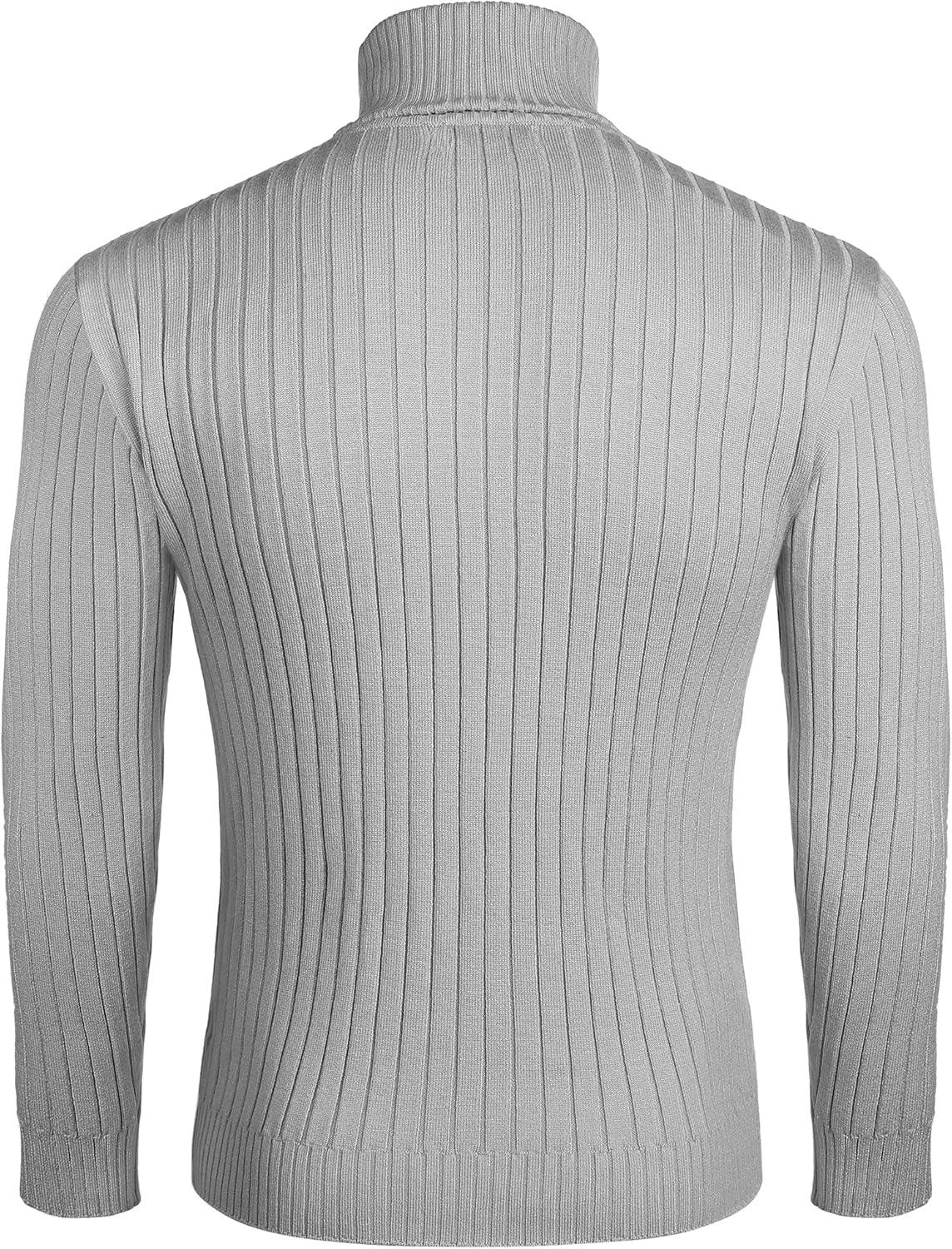 COOFANDY Mens Ribbed Slim Fit Knitted Pullover Casual Turtleneck Sweater(Gray)