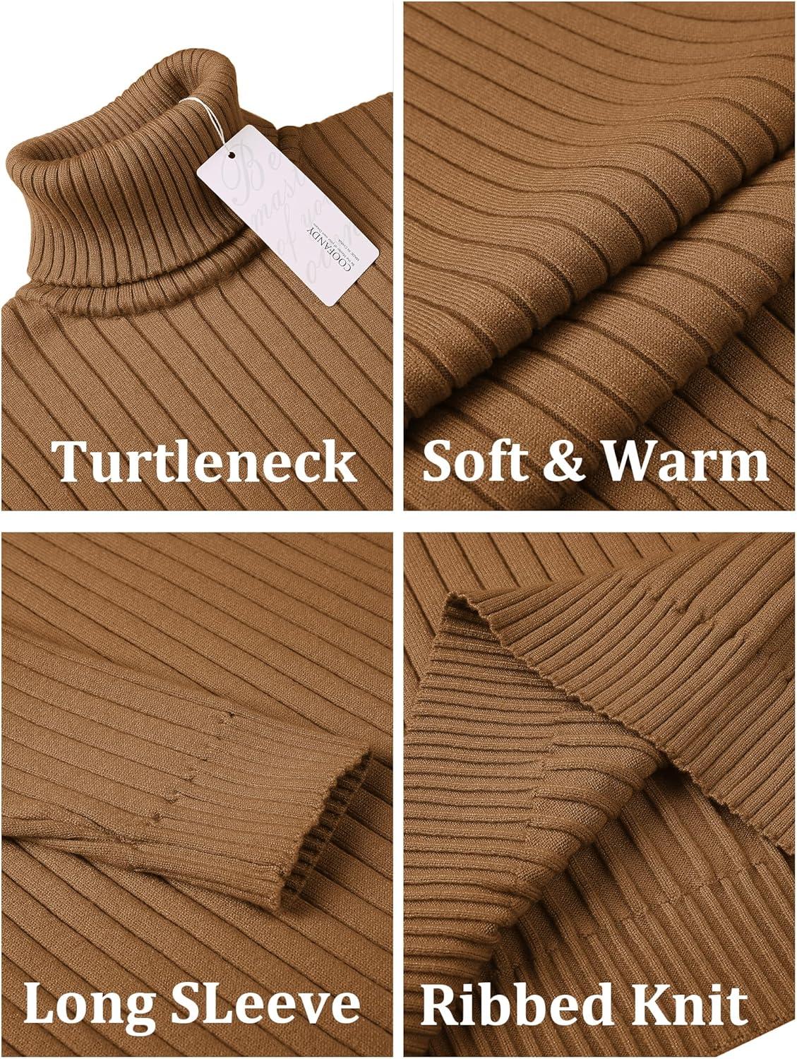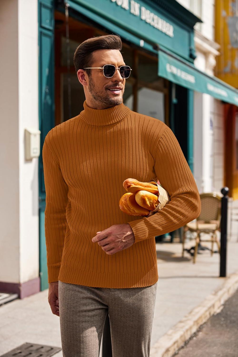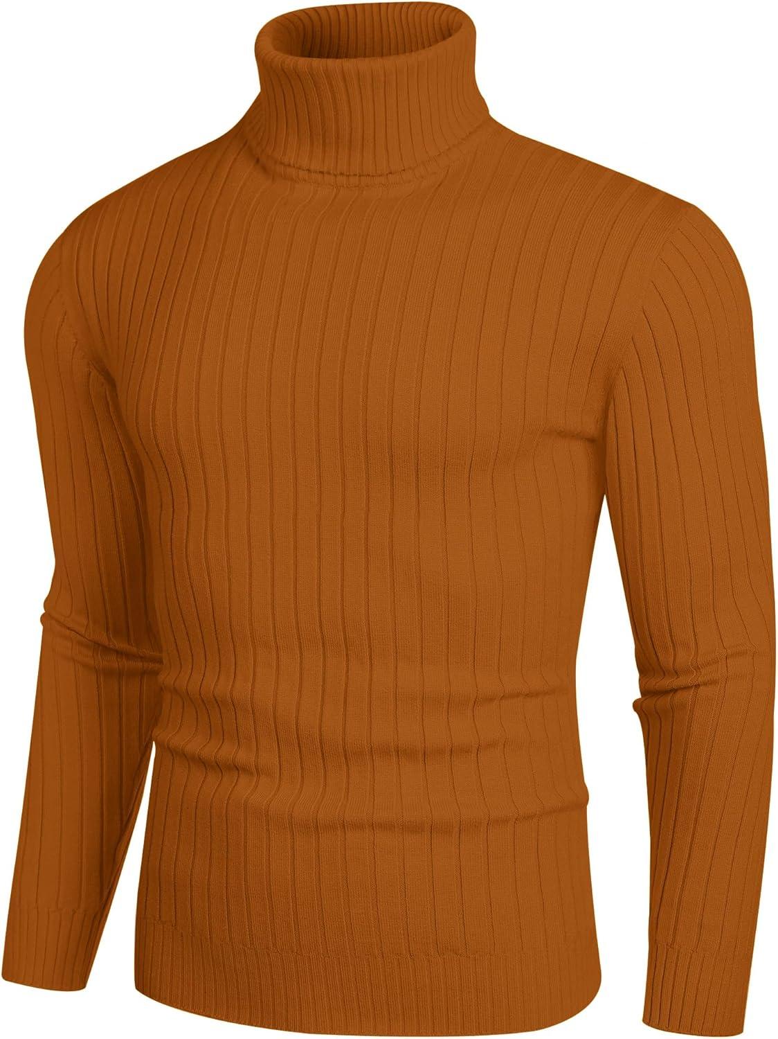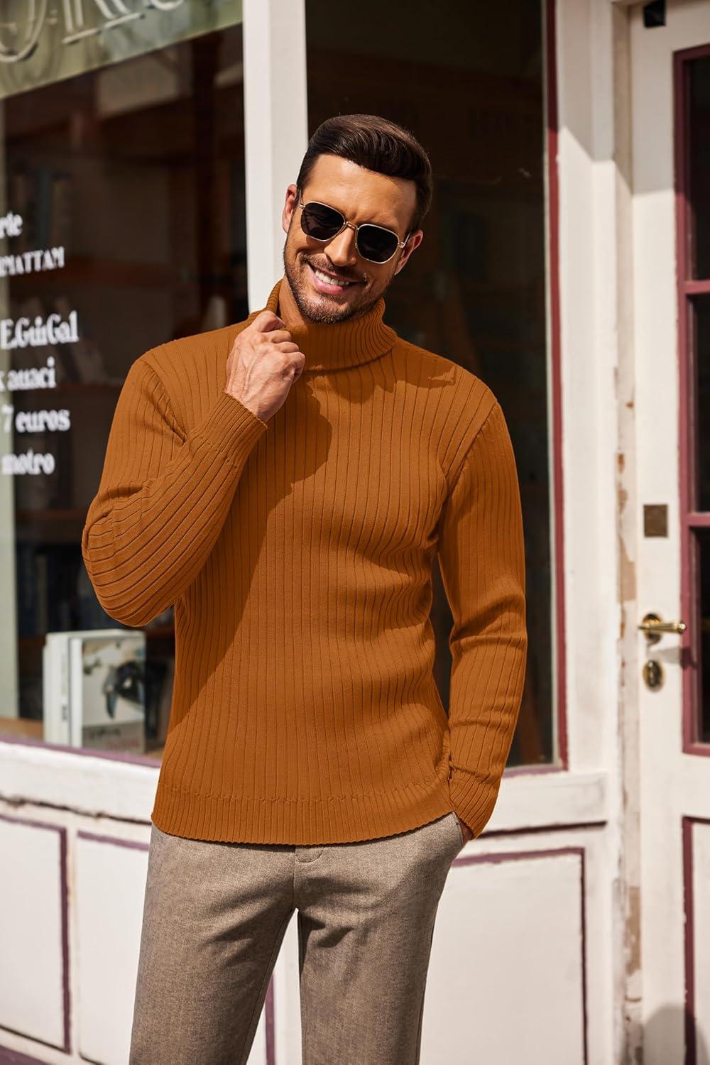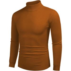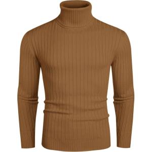 COOFANDY Men’s Slim Fit Turtleneck Sweater Casual Pullover Sweater Lightweight Ribbed Sweater(Caramel)