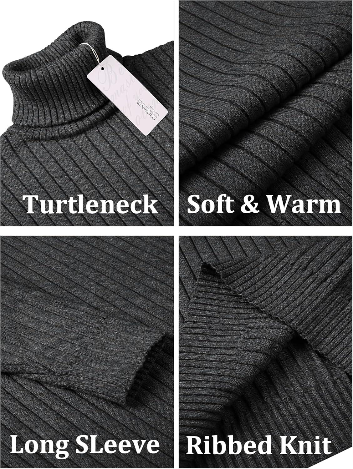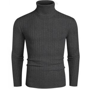 COOFANDY Men’s Ribbed Turtleneck Sweater Casual Basic Long Sleeve Knitted Pullover Sweater(Dark Gray)