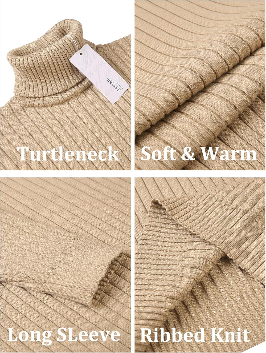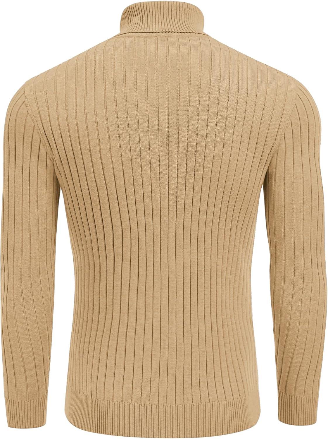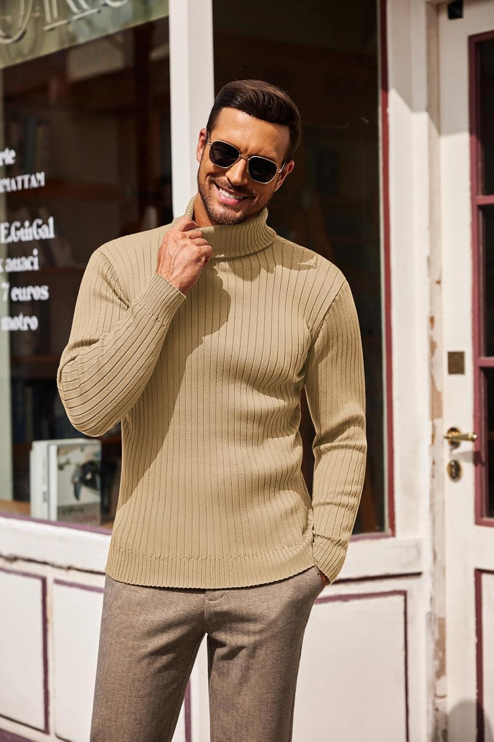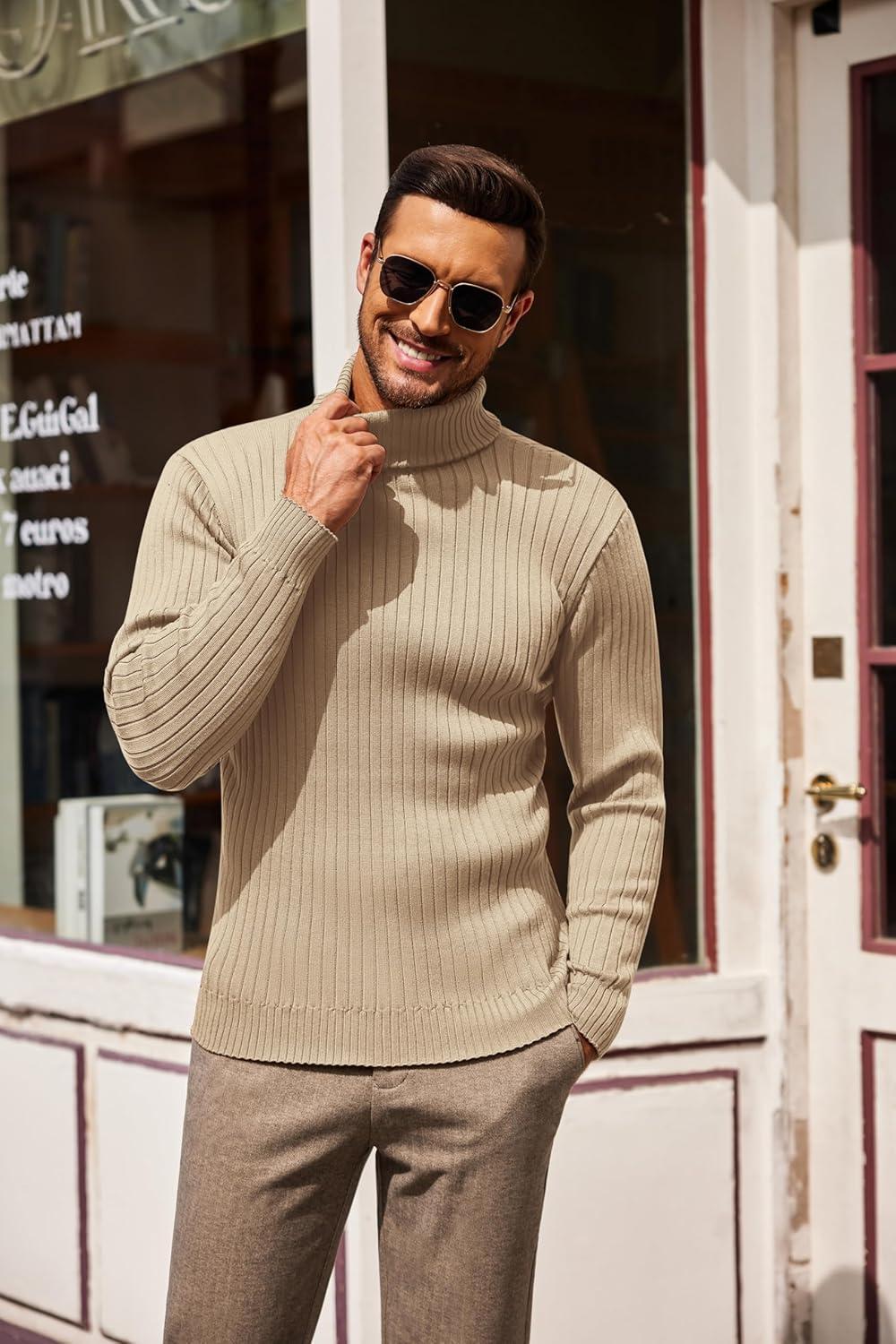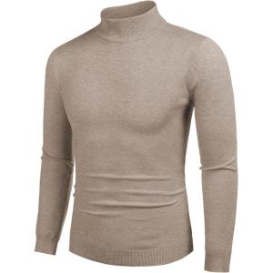 COOFANDY Men’s Slim Fit Turtleneck Sweater Casual Pullover Sweater Lightweight Ribbed Sweater(Khaki)