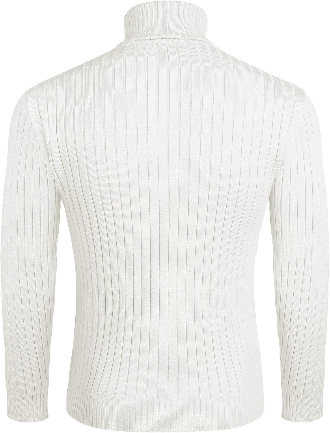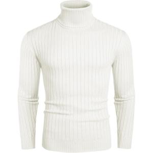 COOFANDY Men’s Ribbed Turtleneck Sweater Casual Basic Long Sleeve Knitted Pullover Sweater(White)