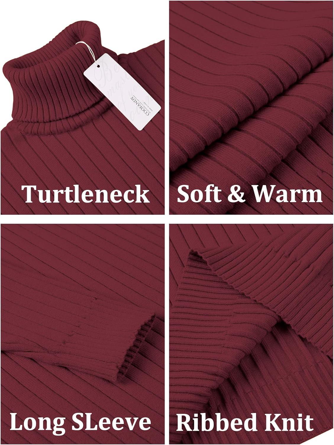 COOFANDY Men’s Ribbed Turtleneck Sweater Casual Basic Long Sleeve Knitted Pullover Sweater(Wine Red)