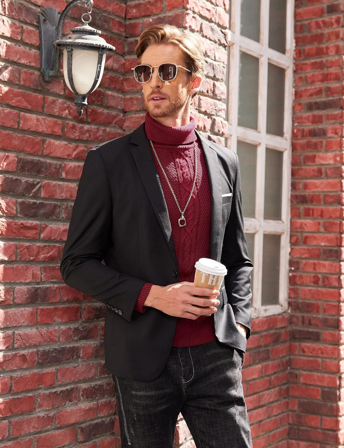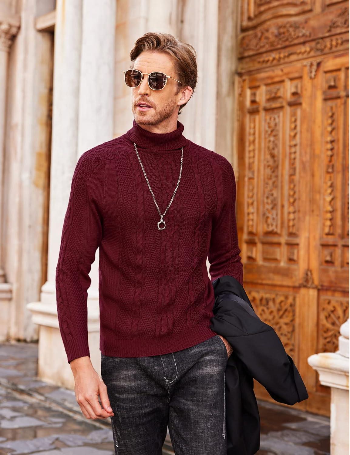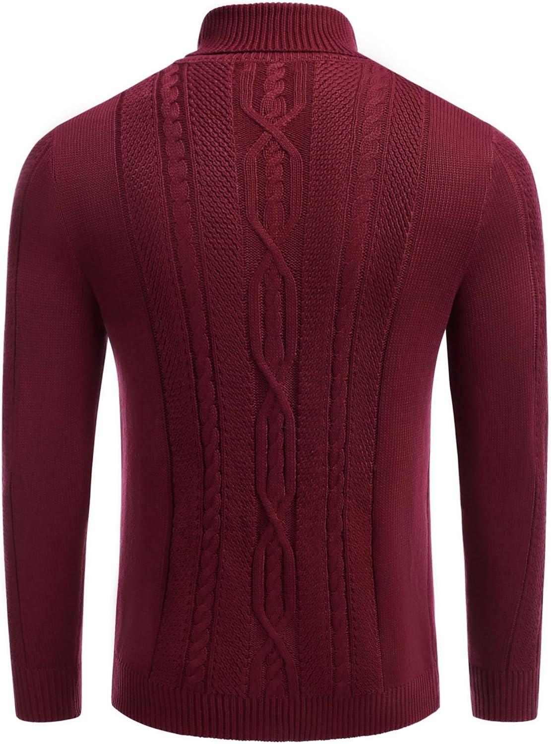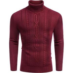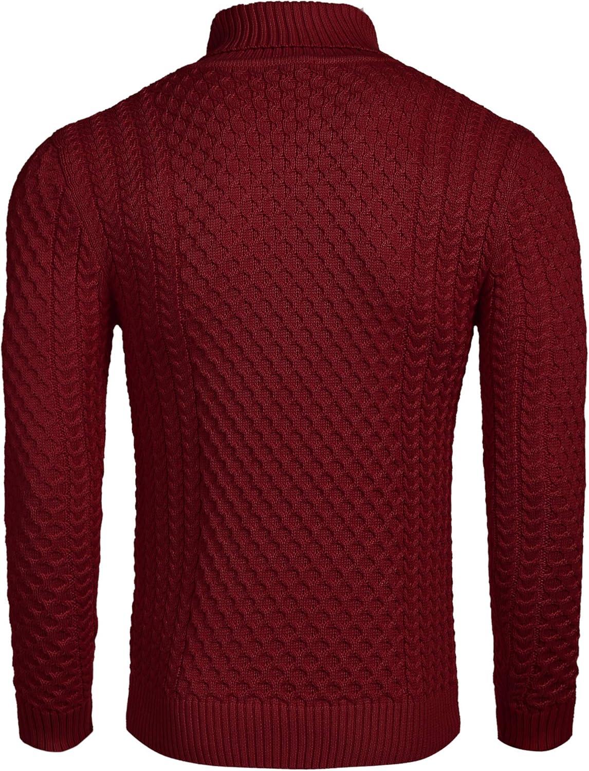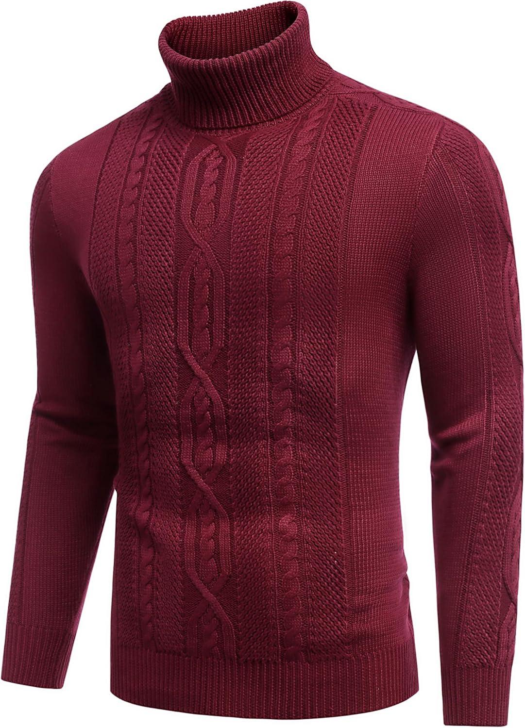 COOFANDY Men’s Turtleneck Sweater Slim Fit Casual Warm Twisted Knitted Pullover Sweaters(01_wine Red)