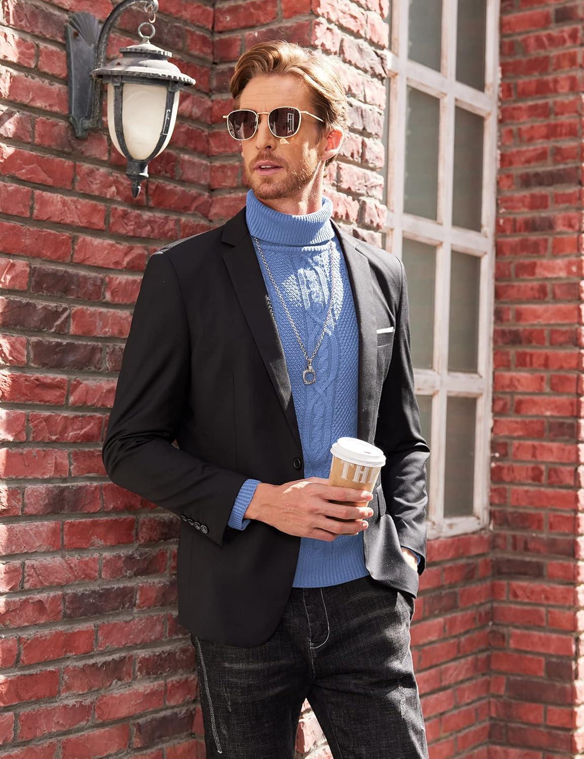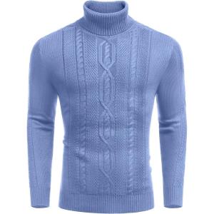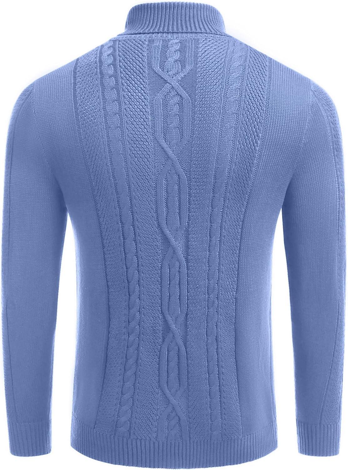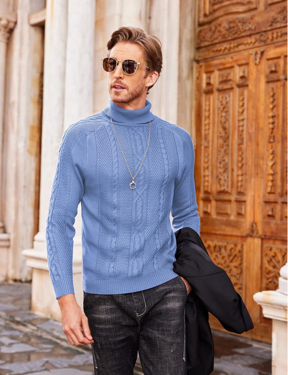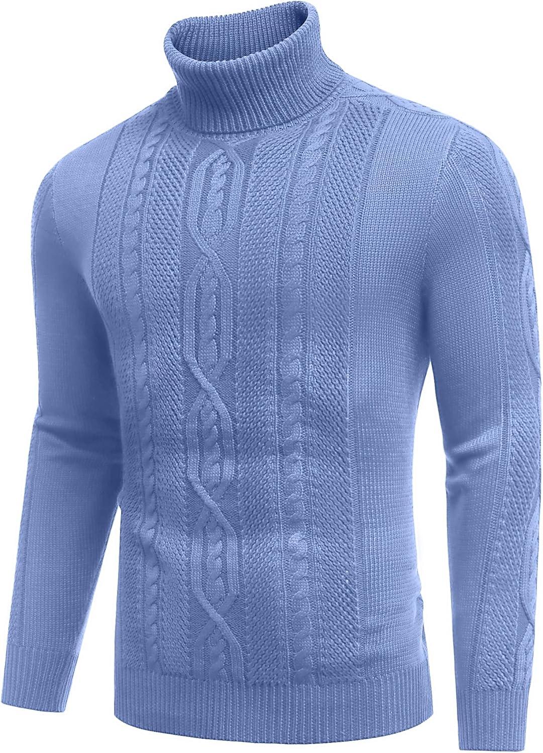 COOFANDY Men’s Turtleneck Sweater Slim Fit Casual Warm Twisted Knitted Pullover Sweaters(Blue)