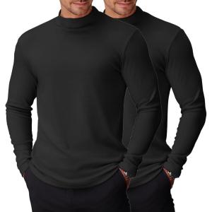 COOFANDY Mens Mock Turtleneck Long Sleeve Shirts Basic Thermal Turtle Neck Undershirt Lightweight Pullover Sweaters Top(Two Pack – Black/Black)