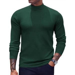 COOFANDY Mens Mock Turtleneck Long Sleeve Shirts Basic Thermal Turtle Neck Undershirt Lightweight Pullover Sweaters Top(Green)