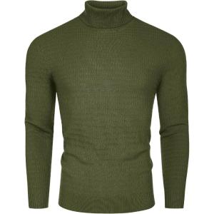 COOFANDY Men’s Ribbed Turtleneck Sweater Casual Basic Long Sleeve Knitted Pullover Sweater(Army Green)