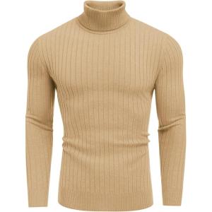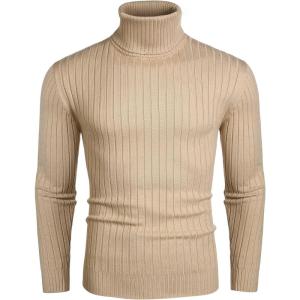 COOFANDY Men’s Ribbed Turtleneck Sweater Casual Basic Long Sleeve Knitted Pullover Sweater(Light Khaki)