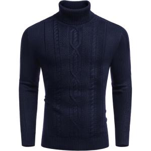 COOFANDY Men’s Turtleneck Sweater Slim Fit Casual Warm Twisted Knitted Pullover Sweaters(Navy Blue)