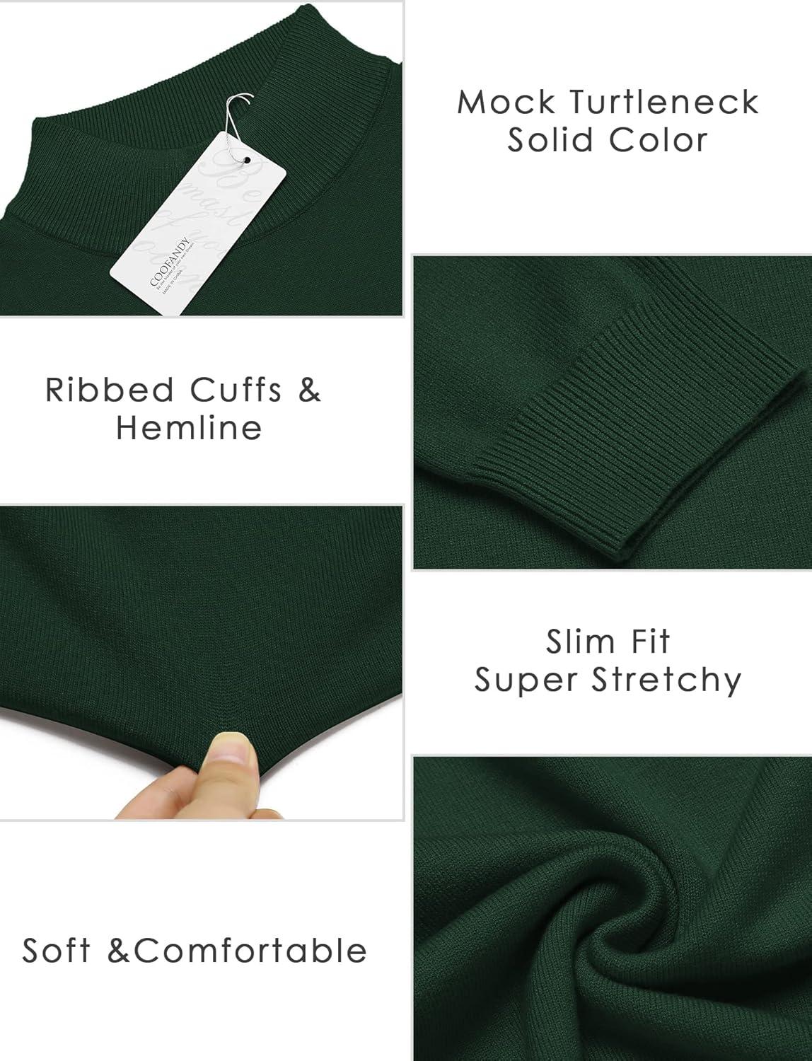 COOFANDY Mens Mock Turtleneck Slim Fit Pullover Sweater Casual Basic Knitted Thermal Sweaters(Forest Green)