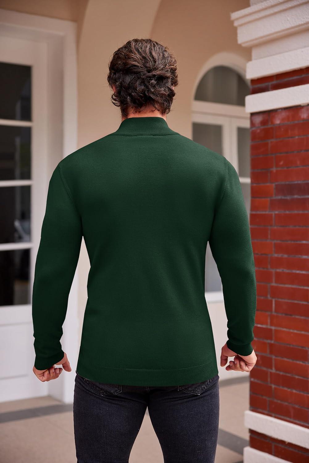 COOFANDY Men’s Mock Turtleneck Sweaters Long Sleeve Casual Knit Shirts Half Neck Thermal Lightweight Pullover Sweater(Dark Green)