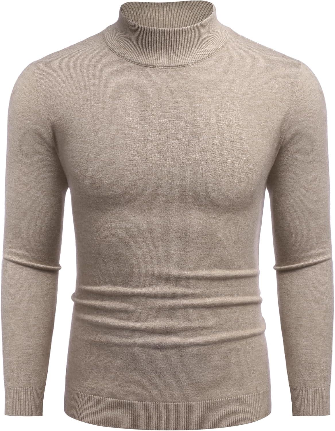 COOFANDY Mens Mock Turtleneck Slim Fit Pullover Sweater Casual Basic Knitted Thermal Sweaters(Khaki)