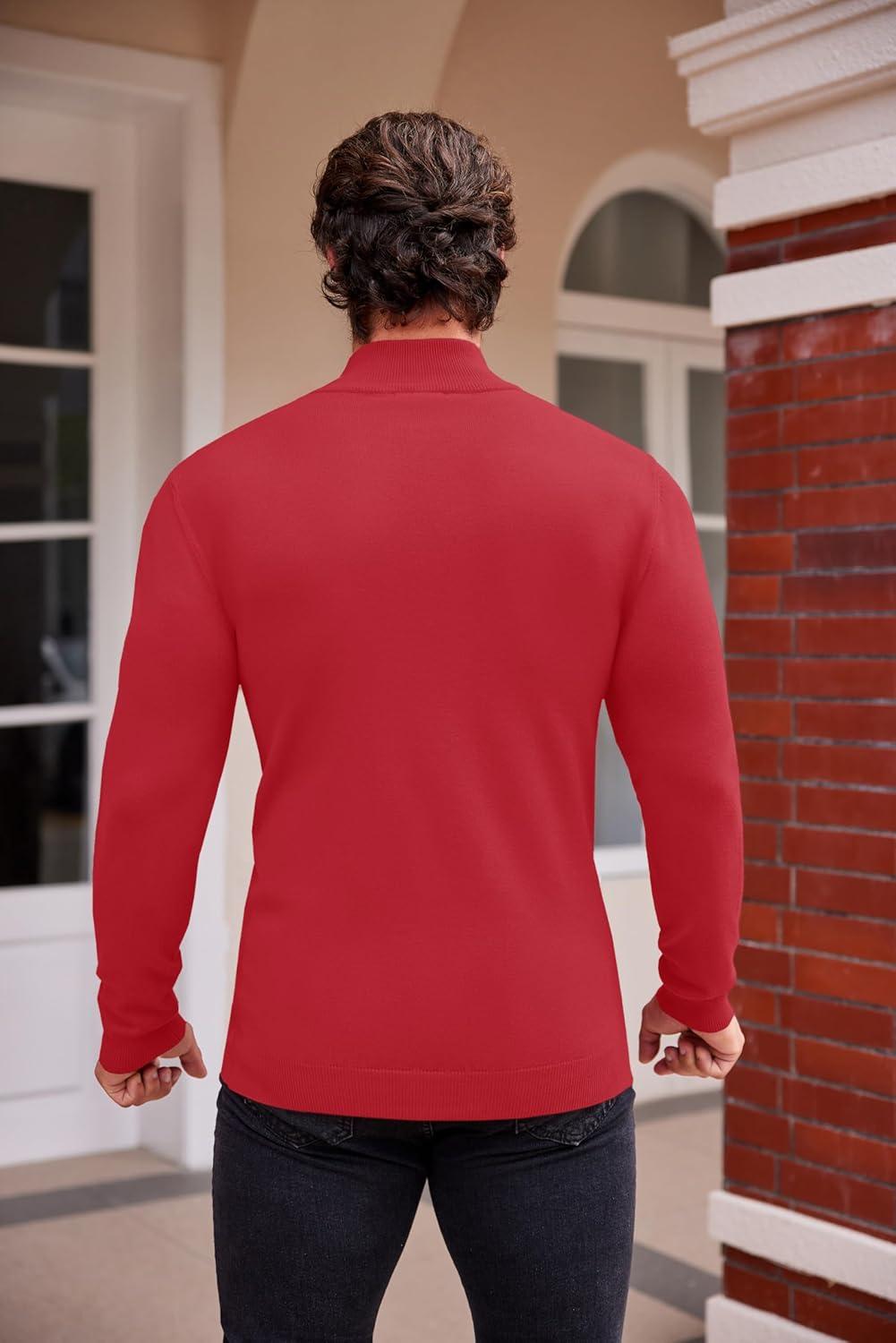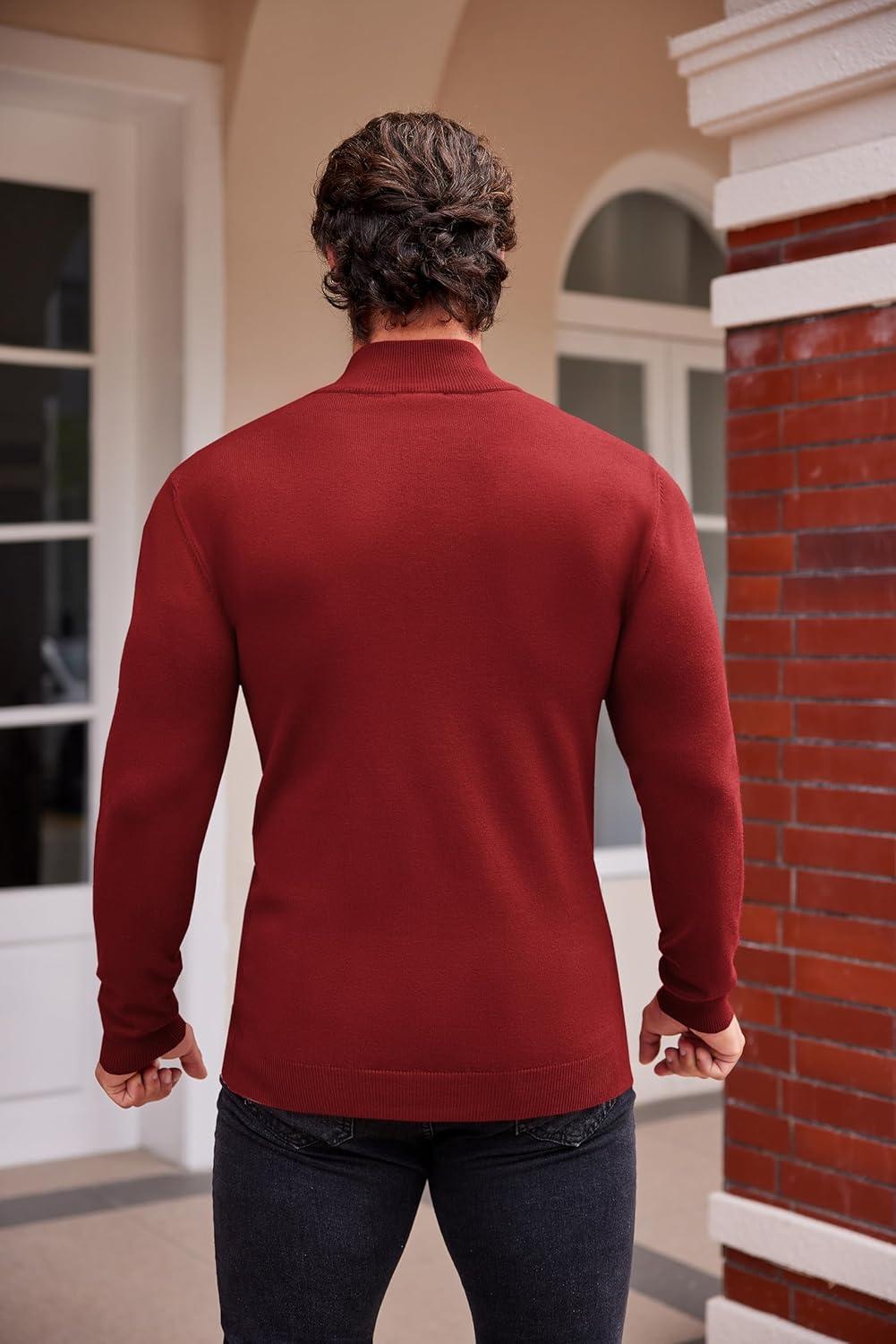 COOFANDY Mens Mock Turtleneck Slim Fit Pullover Sweater Casual Basic Knitted Thermal Sweaters(Red)