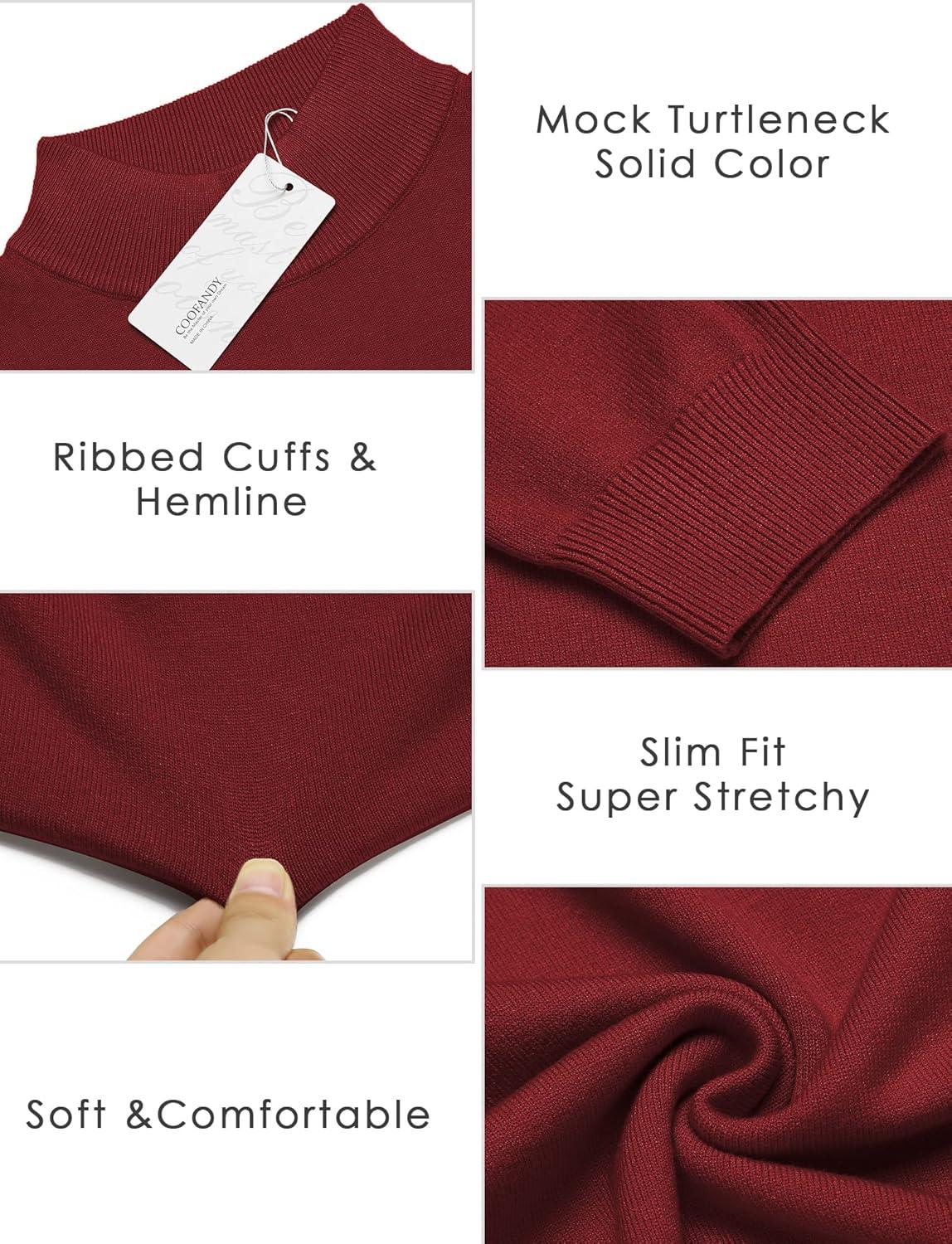 COOFANDY Mens Mock Turtleneck Slim Fit Pullover Sweater Casual Basic Knitted Thermal Sweaters(Wine Red)