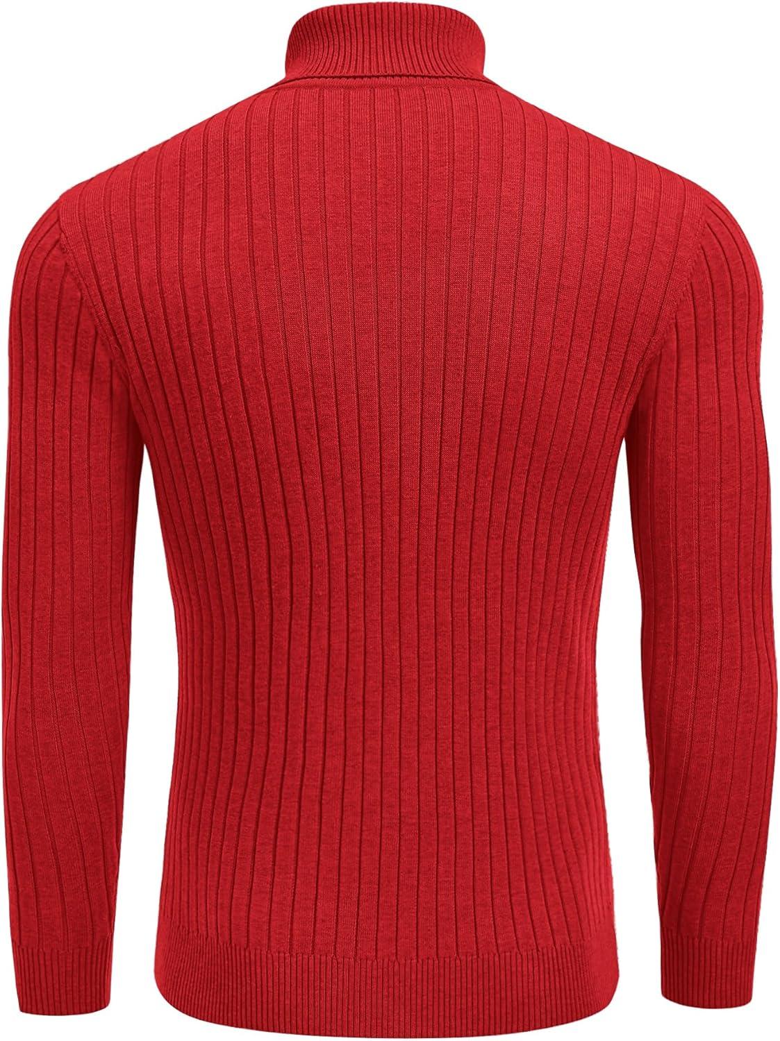 COOFANDY Mens Ribbed Slim Fit Knitted Pullover Casual Turtleneck Sweater(Fired Red)