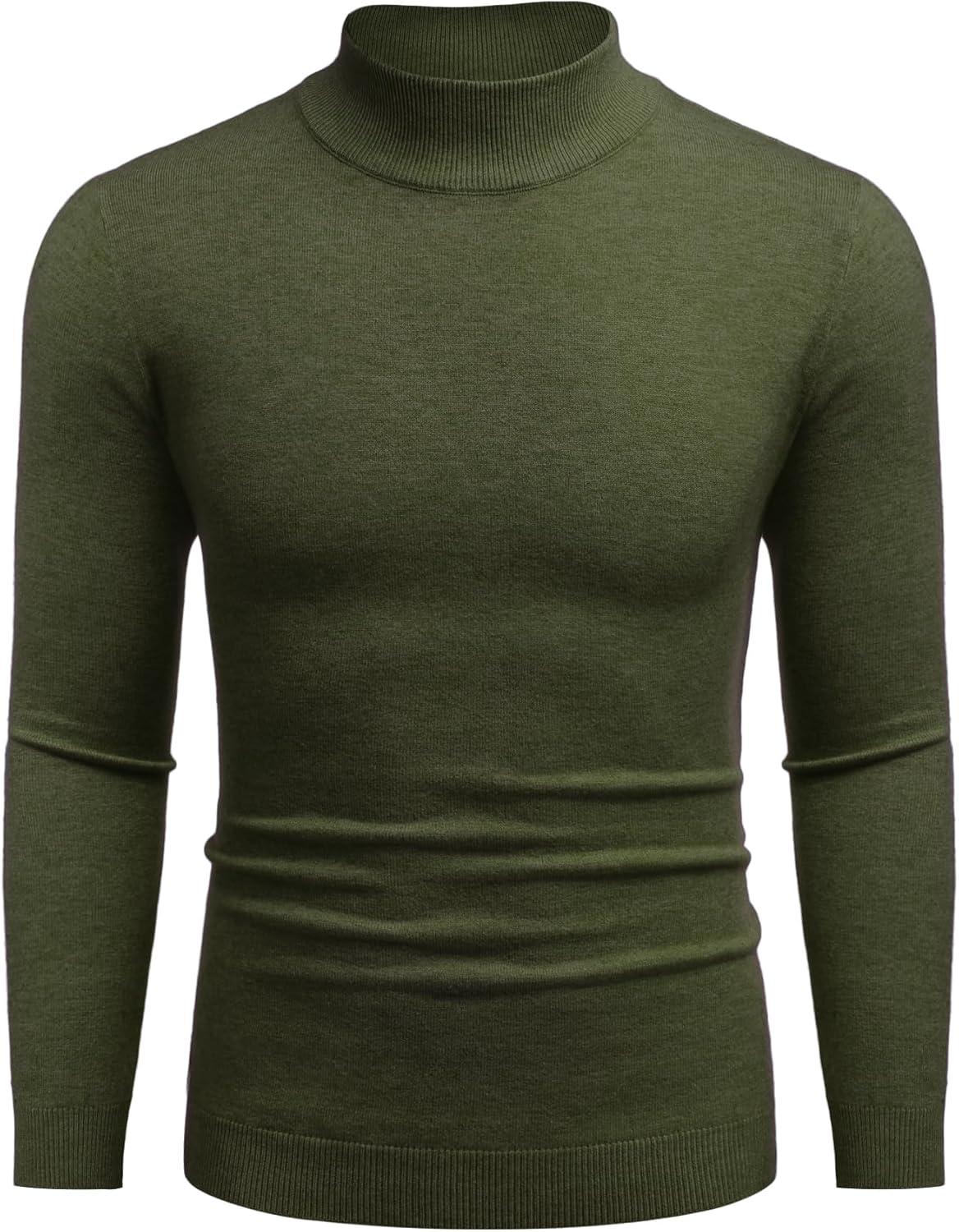 COOFANDY Men’s Slim Fit Mock Turtleneck Pullover Sweater Casual Basic Knitted Thermal Sweaters(Army Green)