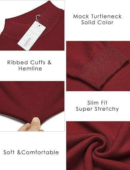COOFANDY Men’s Slim Fit Mock Turtleneck Pullover Sweater Casual Basic Knitted Thermal Sweaters(Red)