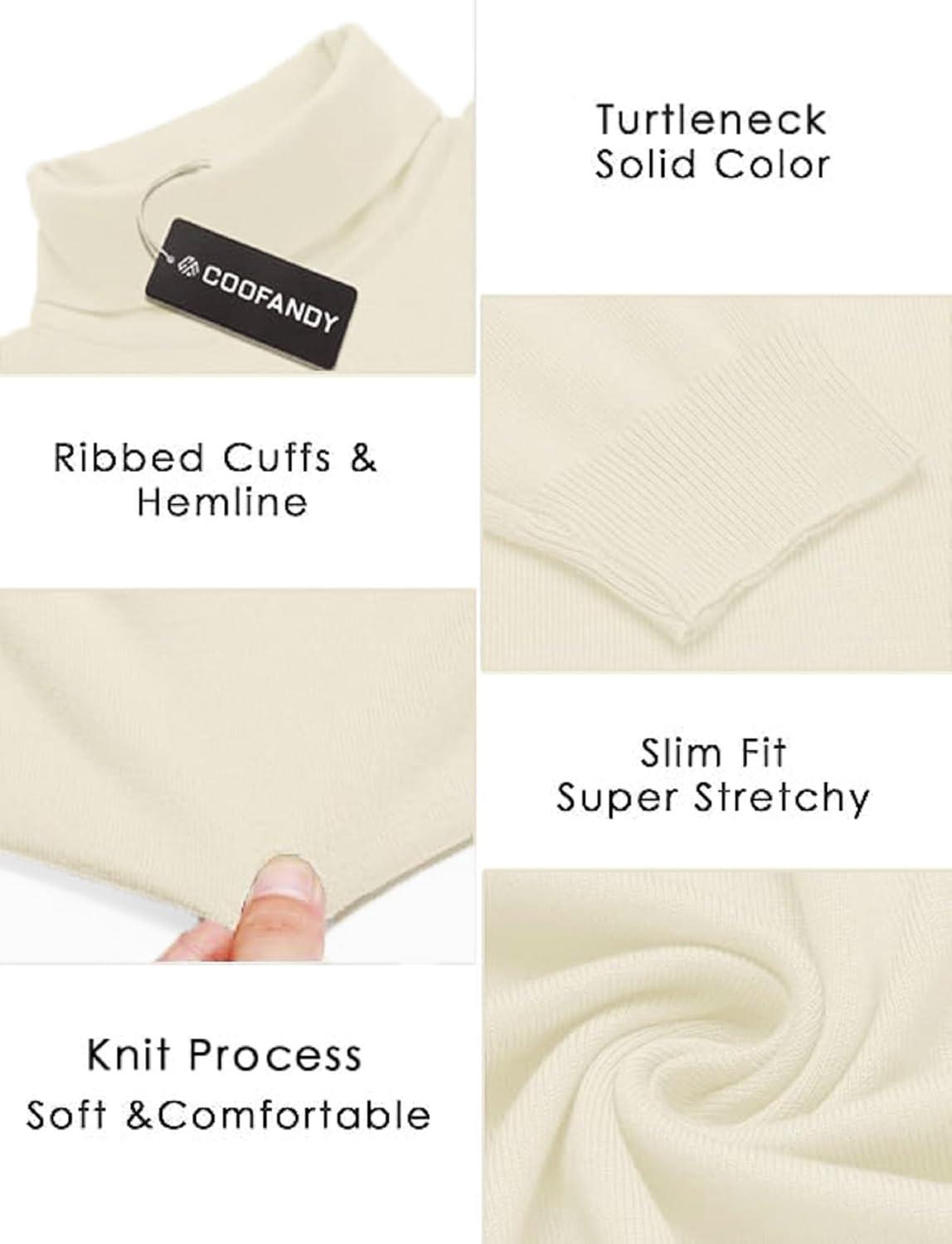 COOFANDY Men’s Slim Fit Turtleneck Sweater Casual Basic Knitted Long Sleeve Pullover Sweater(Beige)