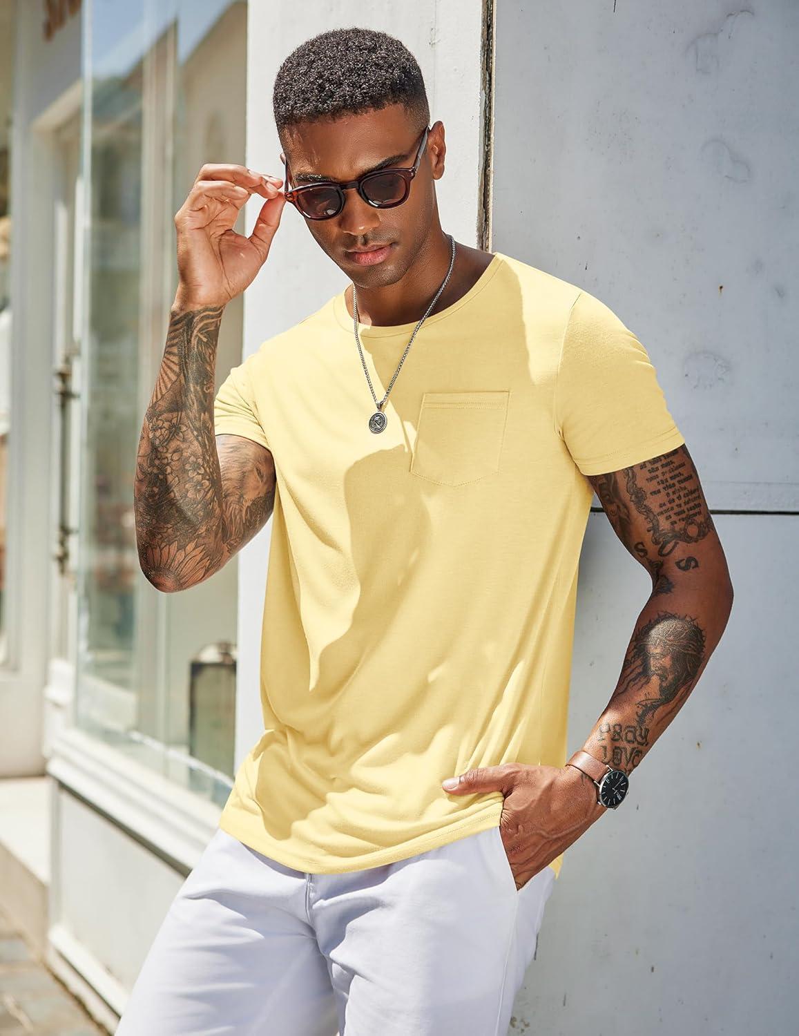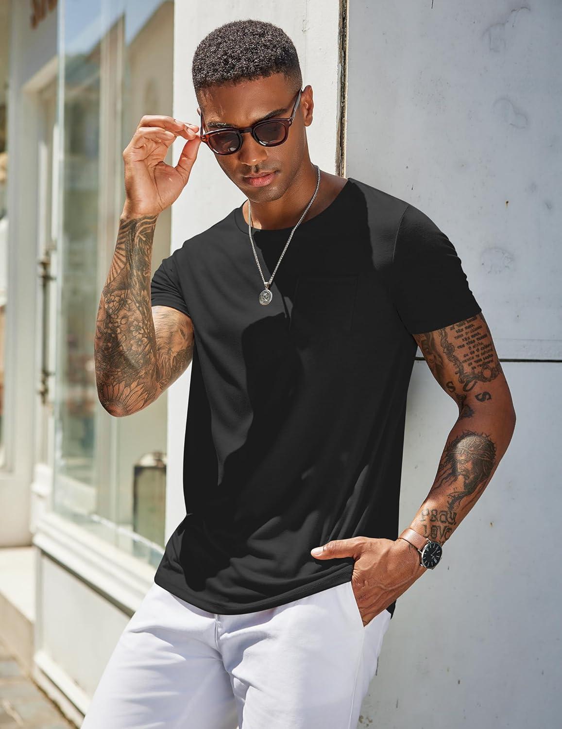 COOFANDY Men’s Cotton Pocket Tee Shirts Soft Crew Neck Stretch T Shirt Plain Casual Short Sleeve Summer Basic Tops(1 Pack- All Black)