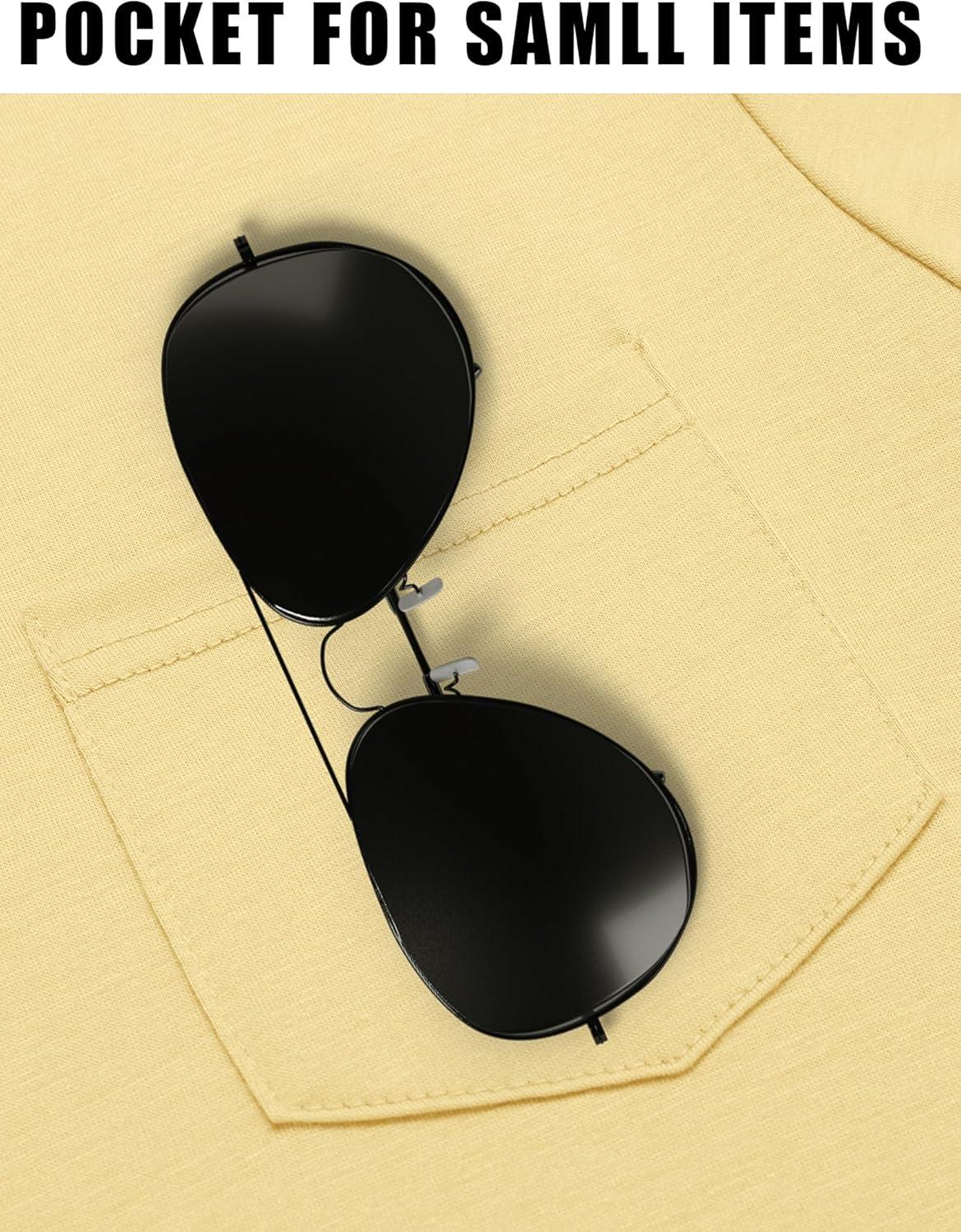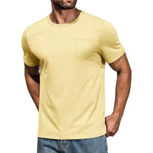 COOFANDY Men’s Cotton Pocket Tee Shirts Soft Crew Neck Stretch T Shirt Plain Casual Short Sleeve Summer Basic Tops(1 Pack- Beige)