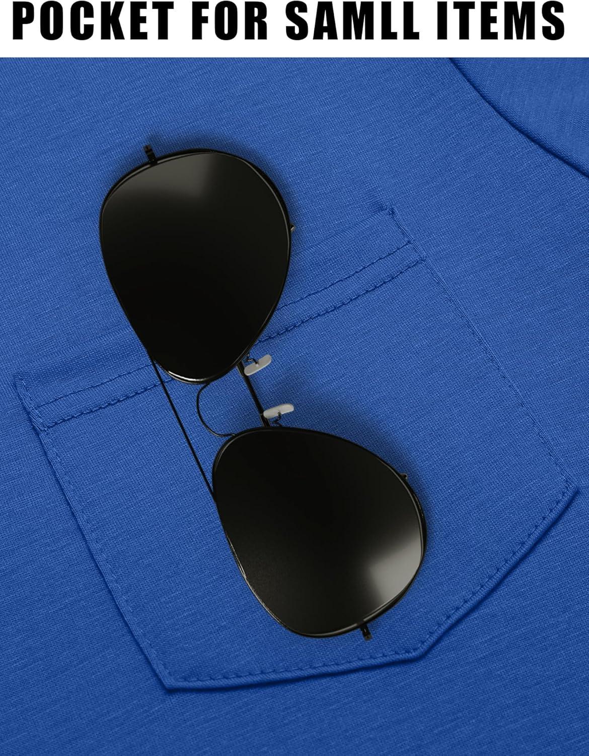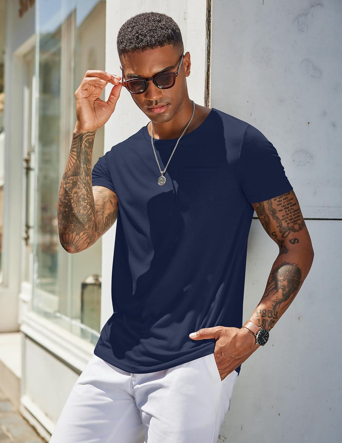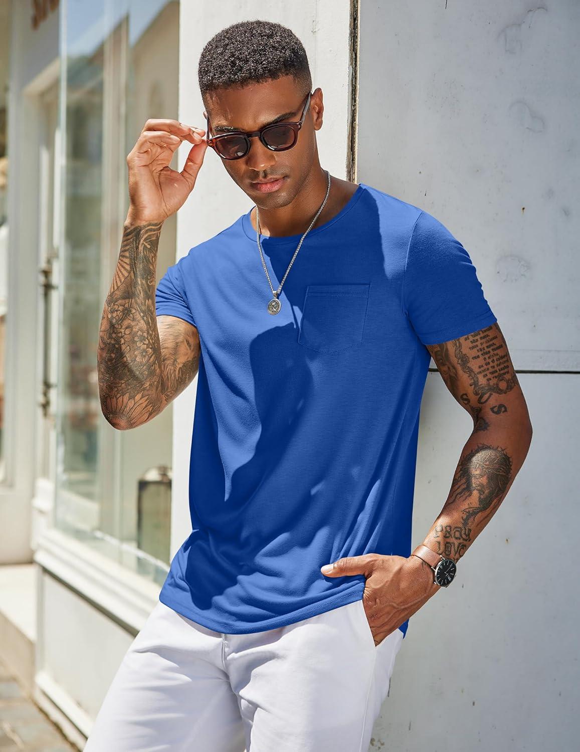 COOFANDY Men’s Cotton Pocket Tee Shirts Soft Crew Neck Stretch T Shirt Plain Casual Short Sleeve Summer Basic Tops(1 Pack- Blue)