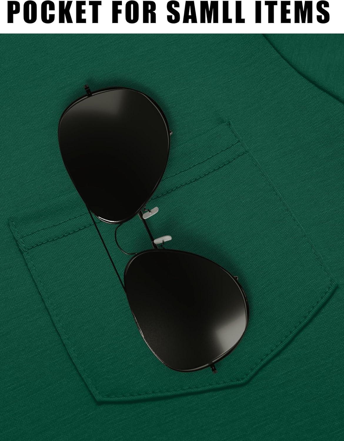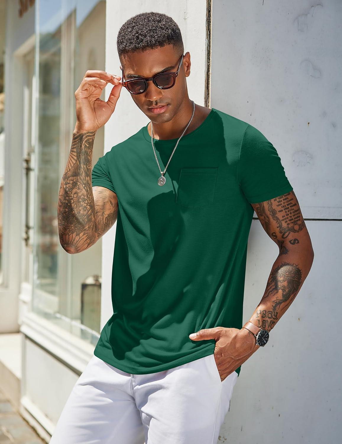 COOFANDY Men’s Cotton Pocket Tee Shirts Soft Crew Neck Stretch T Shirt Plain Casual Short Sleeve Summer Basic Tops(1 Pack- Dark Green)