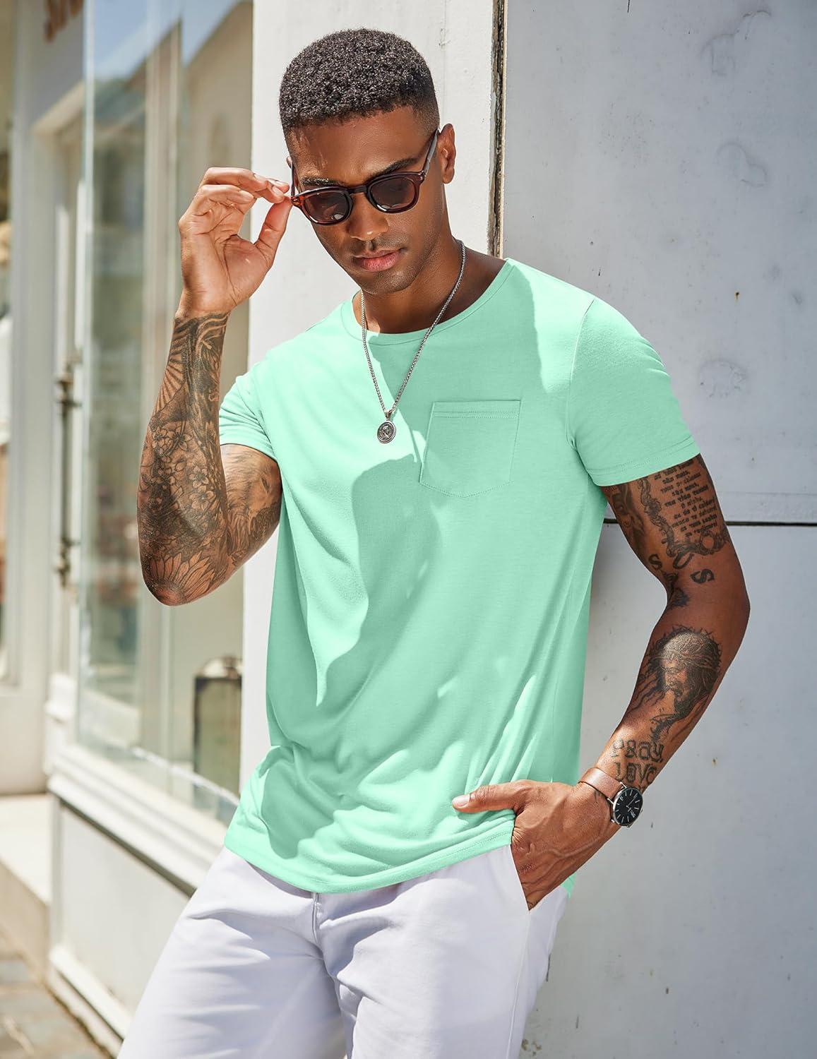 COOFANDY Men’s Cotton Pocket Tee Shirts Soft Crew Neck Stretch T Shirt Plain Casual Short Sleeve Summer Basic Tops(1 Pack- Ice Green)