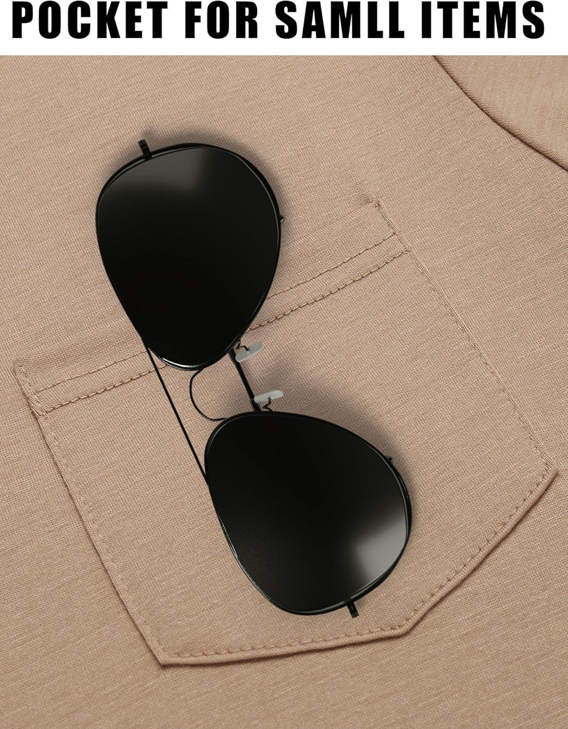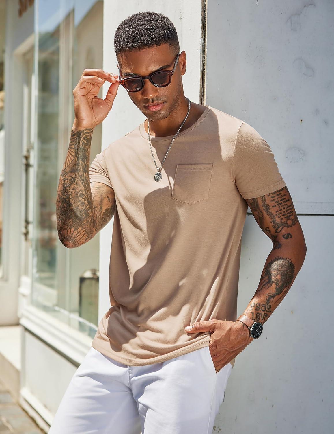 COOFANDY Men’s Cotton Pocket Tee Shirts Soft Crew Neck Stretch T Shirt Plain Casual Short Sleeve Summer Basic Tops(1 Pack- Khaki)